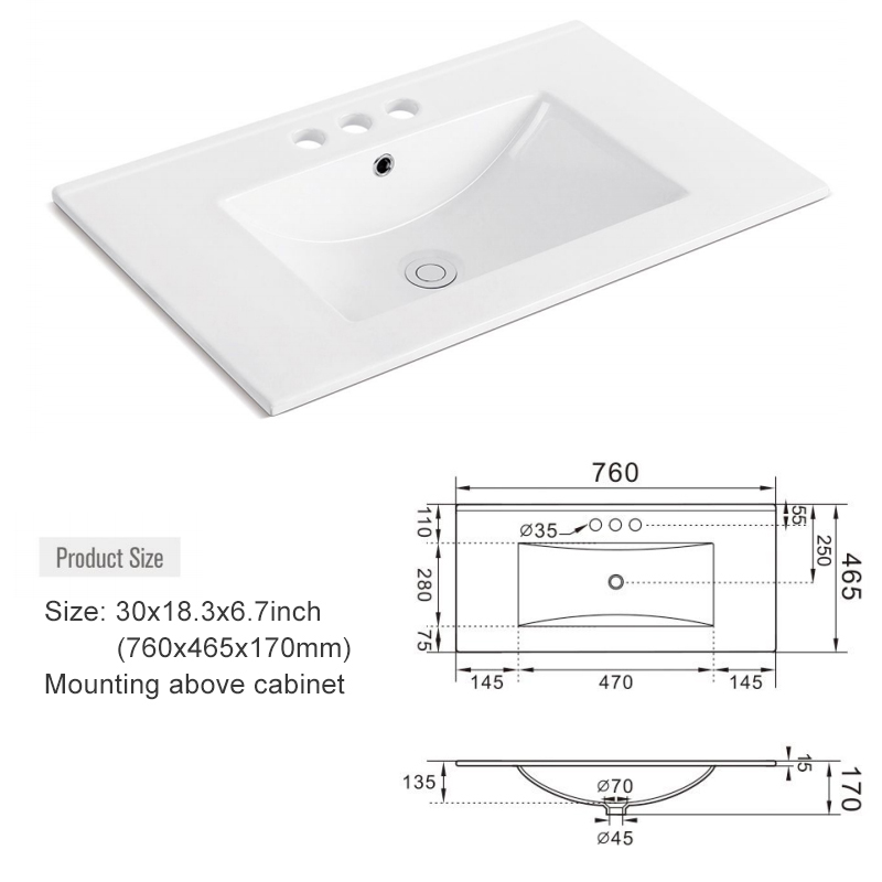 1 30-inch ceramic thin-rimmed basin bathroom Sinks