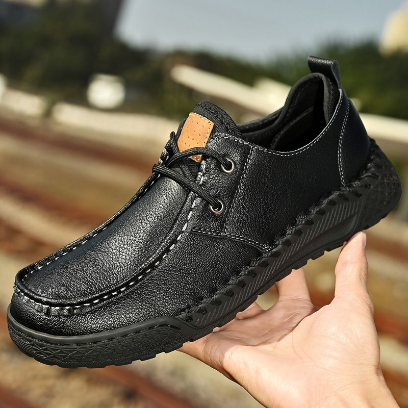 2025 New Handmade Stitched Casual Men's Leather Shoes Low Top Plus Size Loafers