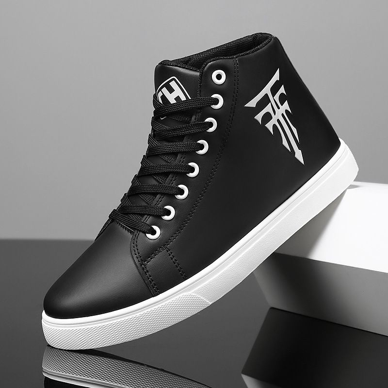Autumn And Winter Plus Size Men's Casual Board High Top Leather Surface Anti Slip Breathable Fashionable White Shoes