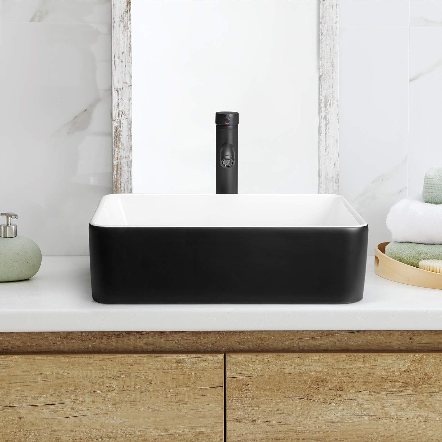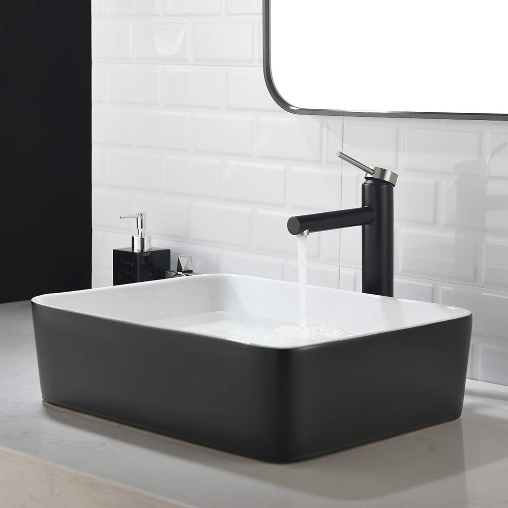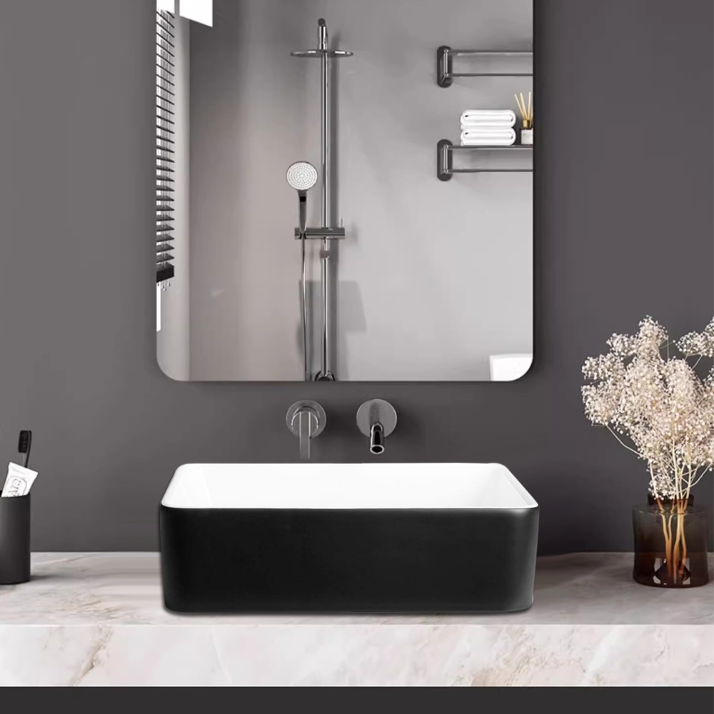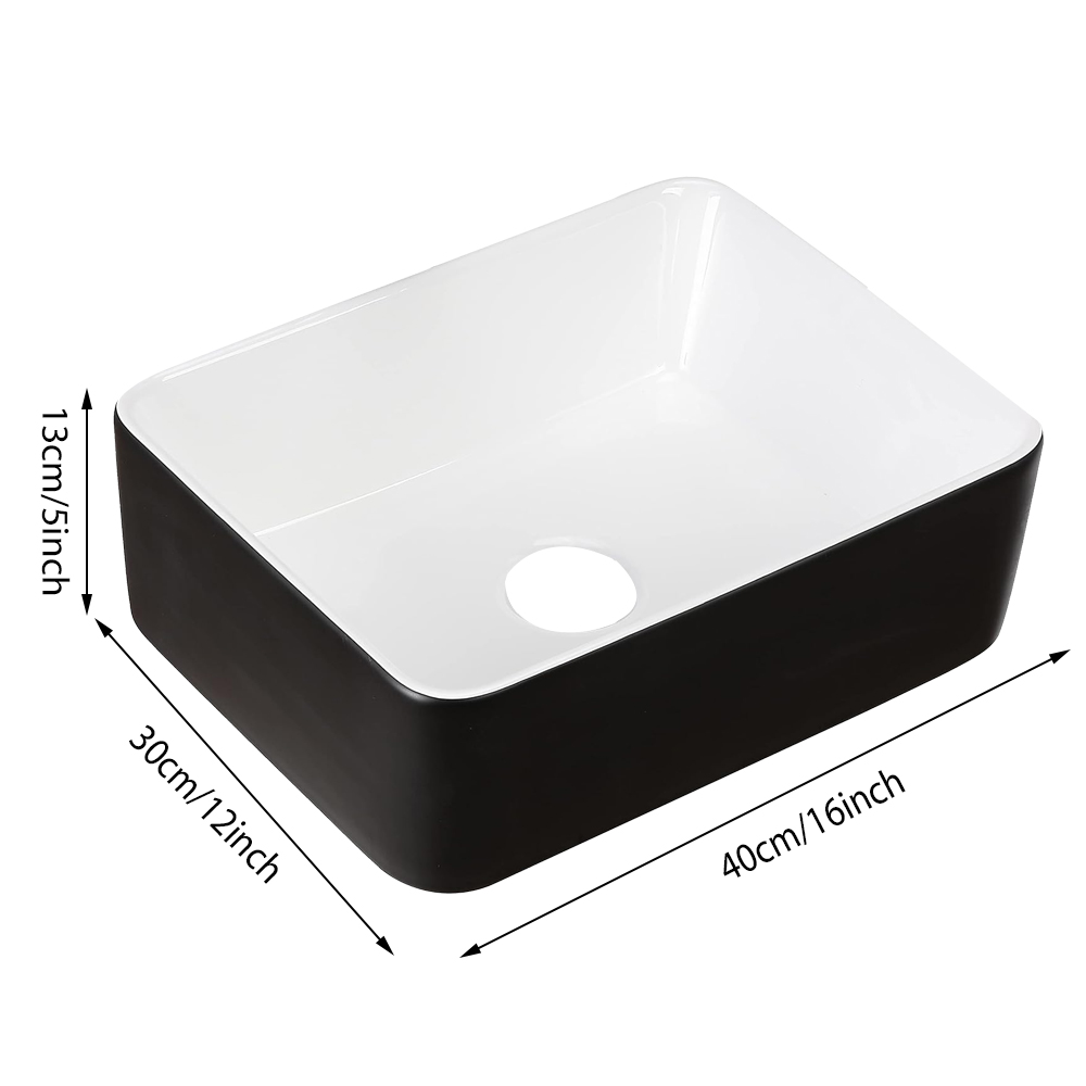 Black And White Ceramic Bathroom Sink, 16" X 12" Above Counter Porcelain Vessel Vanity Sink, Rectangle Modern Art Basin