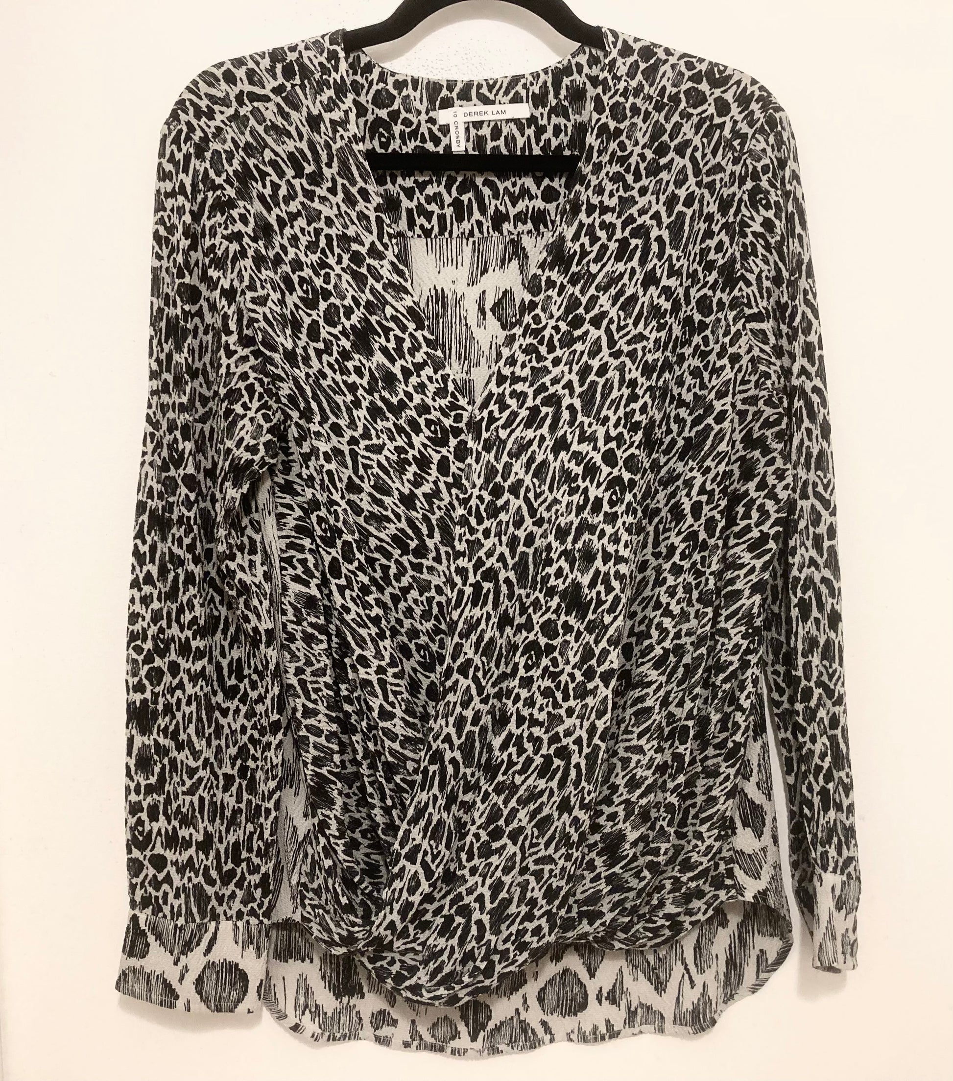 Derek Lam Silk 10 Crosby Leopard V-Neck Women's Top Gray & Black Size Medium