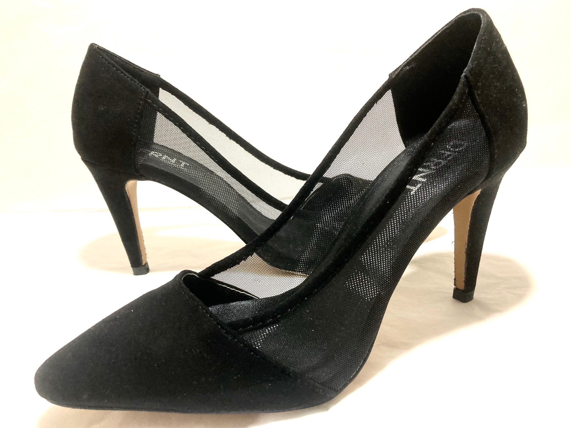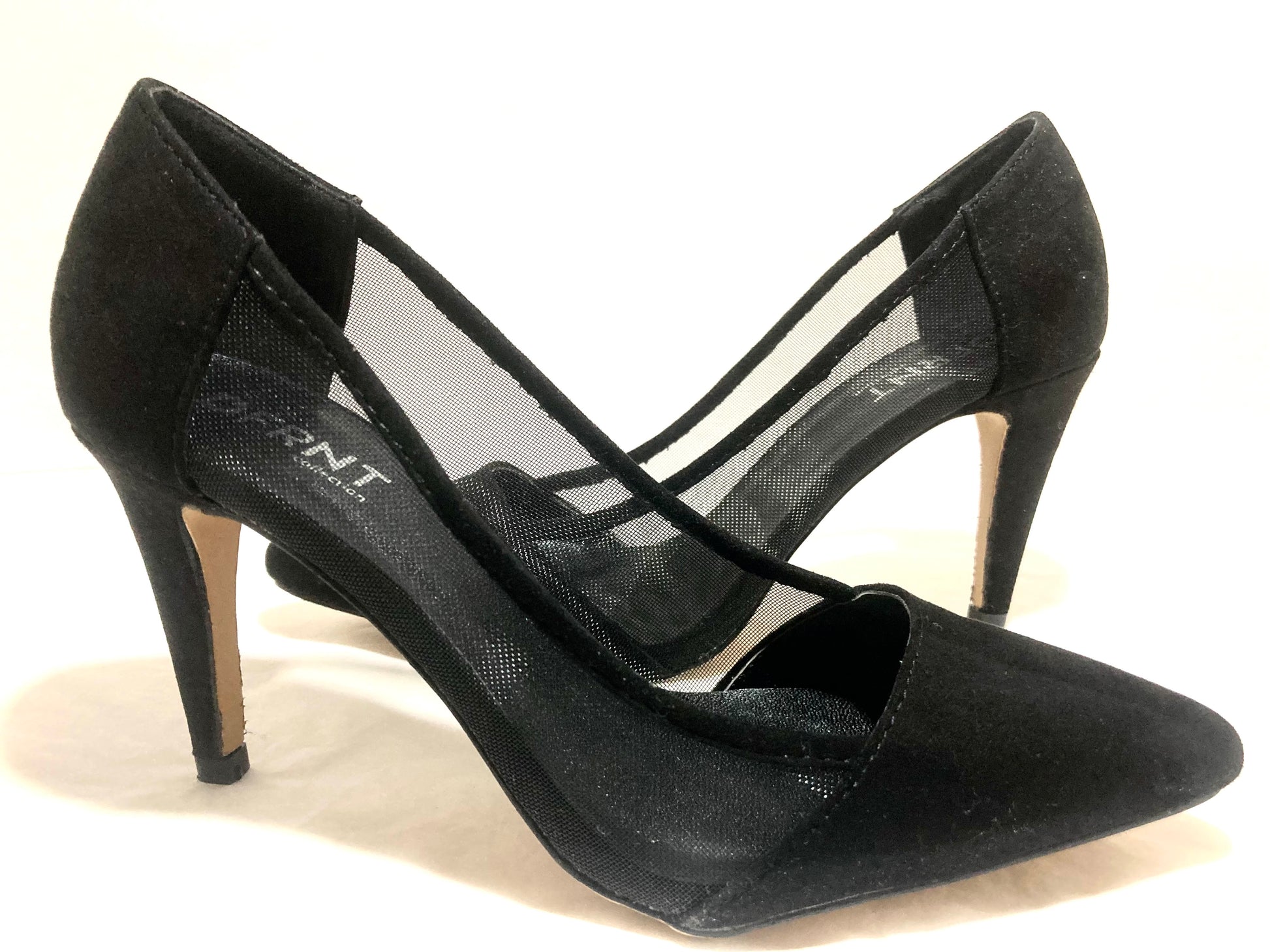 Step out in style with these elegant black mesh heels. Perfect for any occasion, these shoes offer a sleek and sophisticated look.