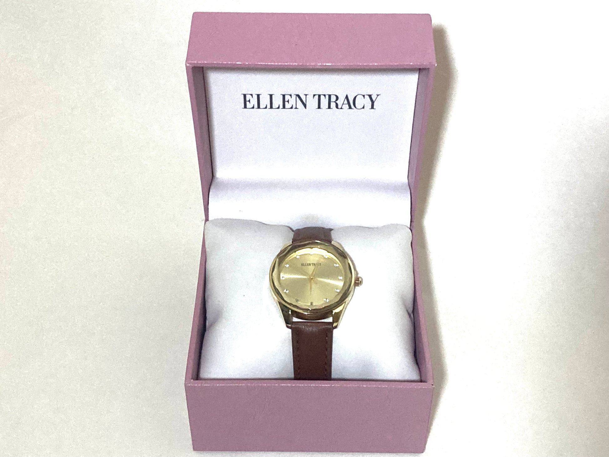 Ellen Tracy Gold-Tone Watch with Brown Adjustable Strap NIB