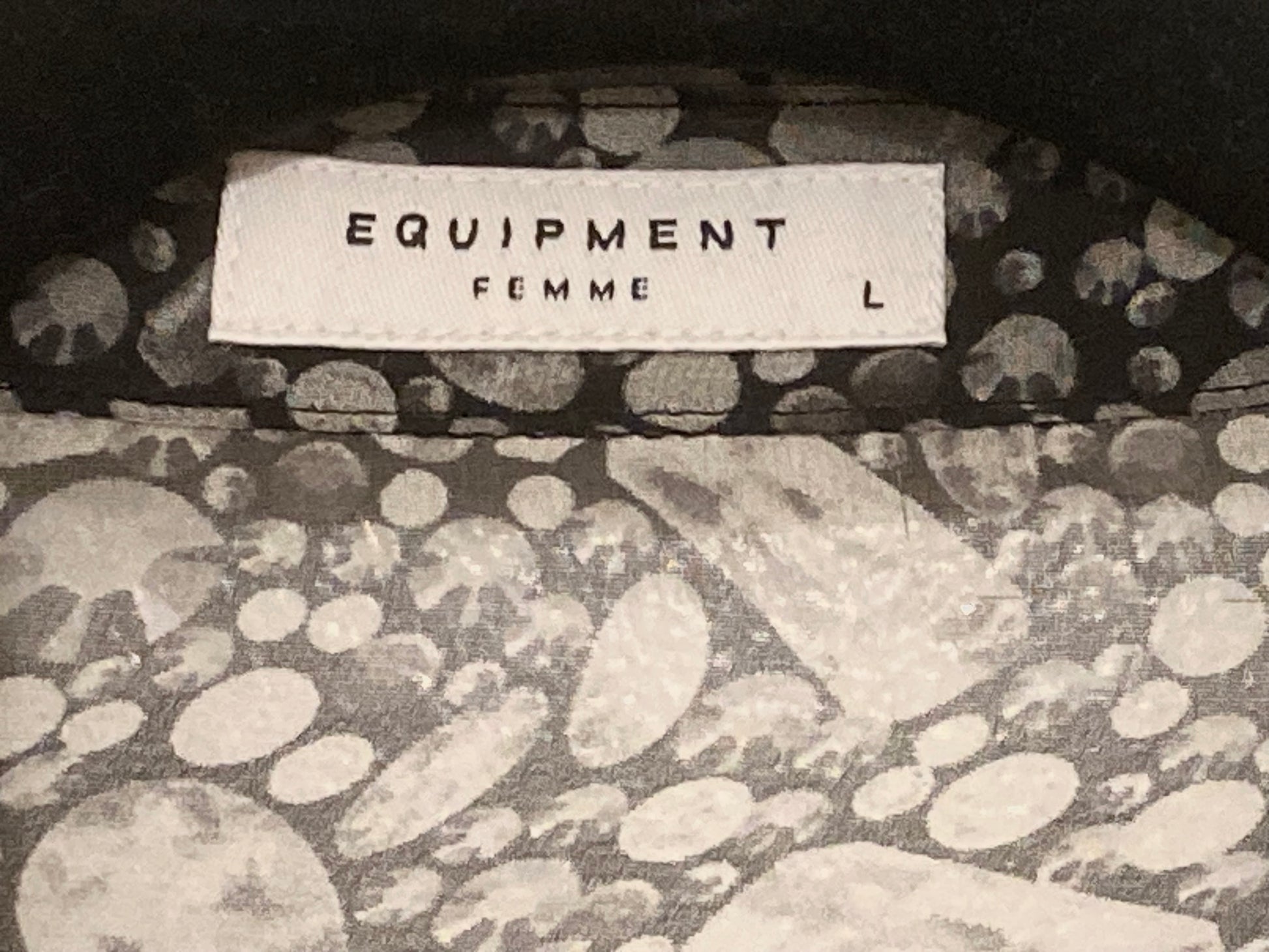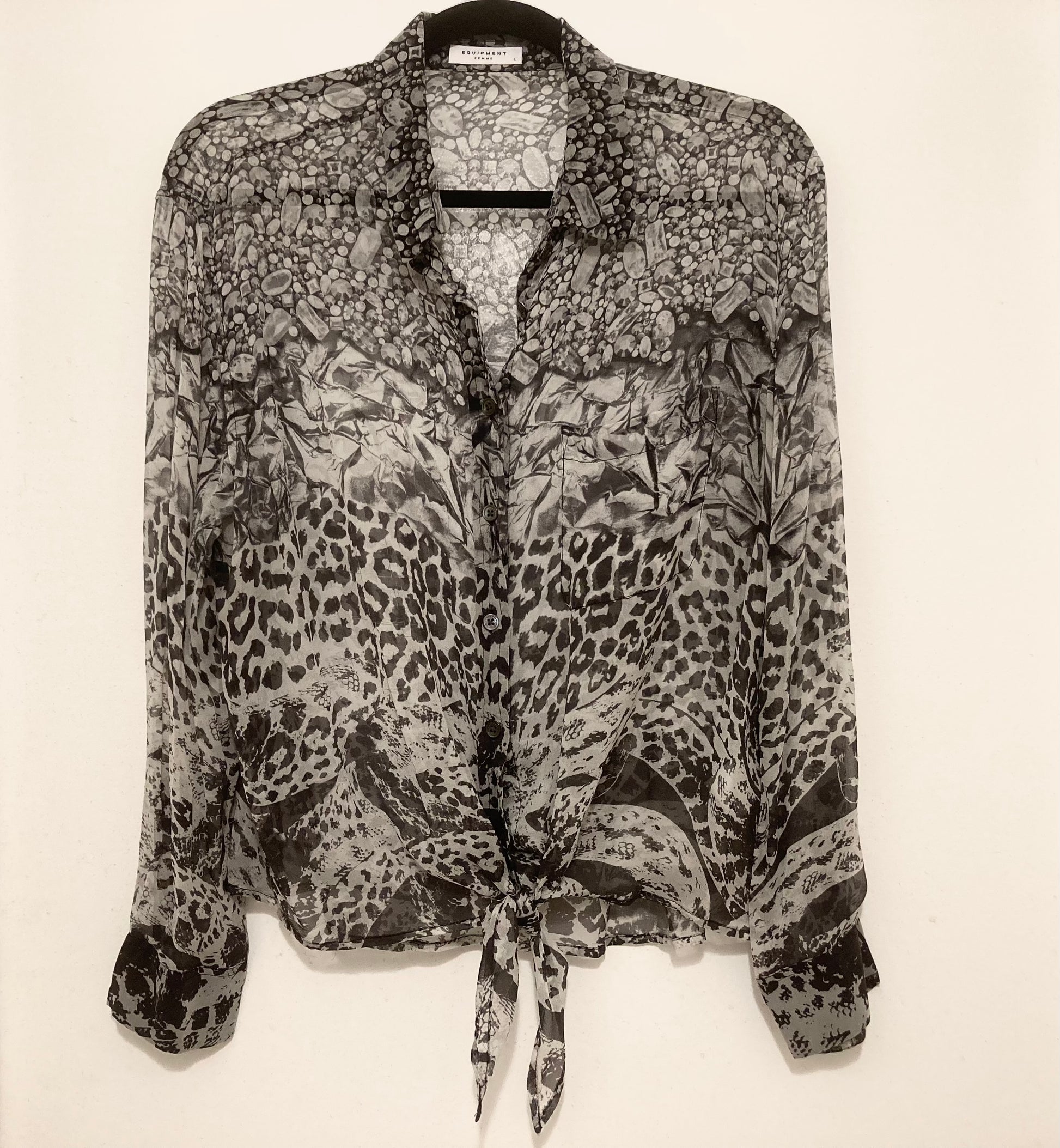 Equipment 100% Sheer Silk Button Down Black and Gray Women's Blouse Size Large