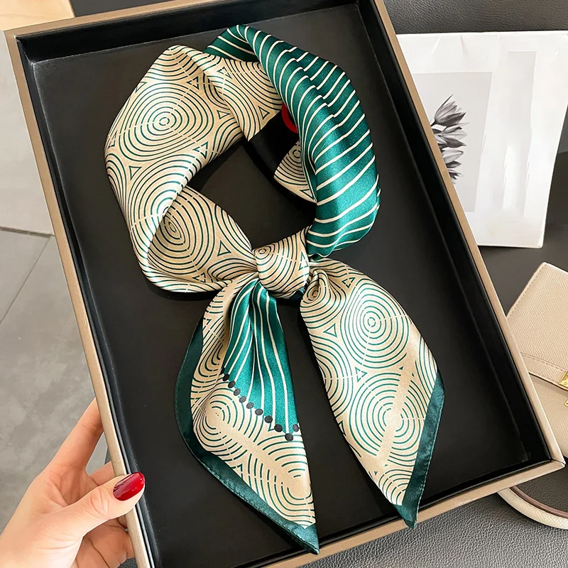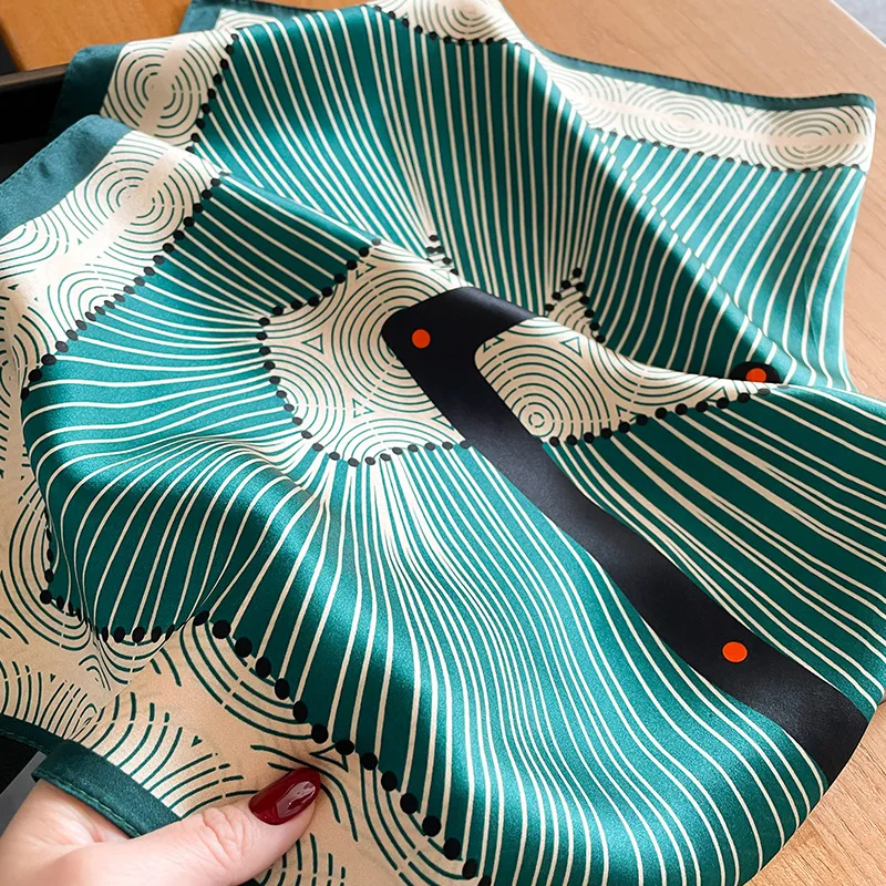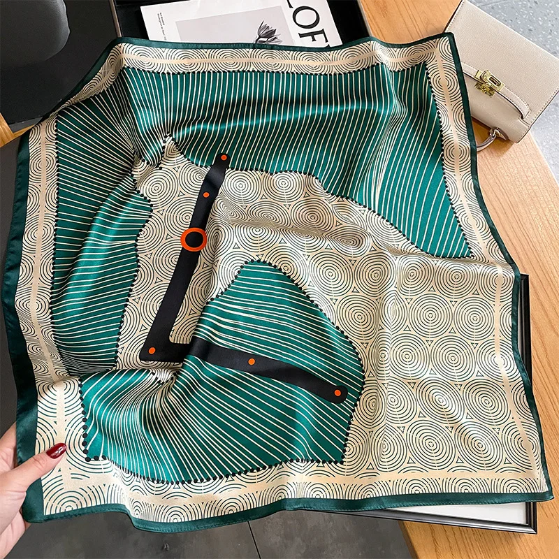 Fashion Summer Spring Square Neck Scarves Accessories Hijab Headscarf Retro Horse Pattern Printed 70cm Silk Scarf for Women