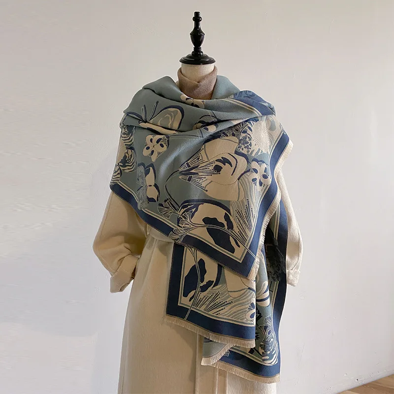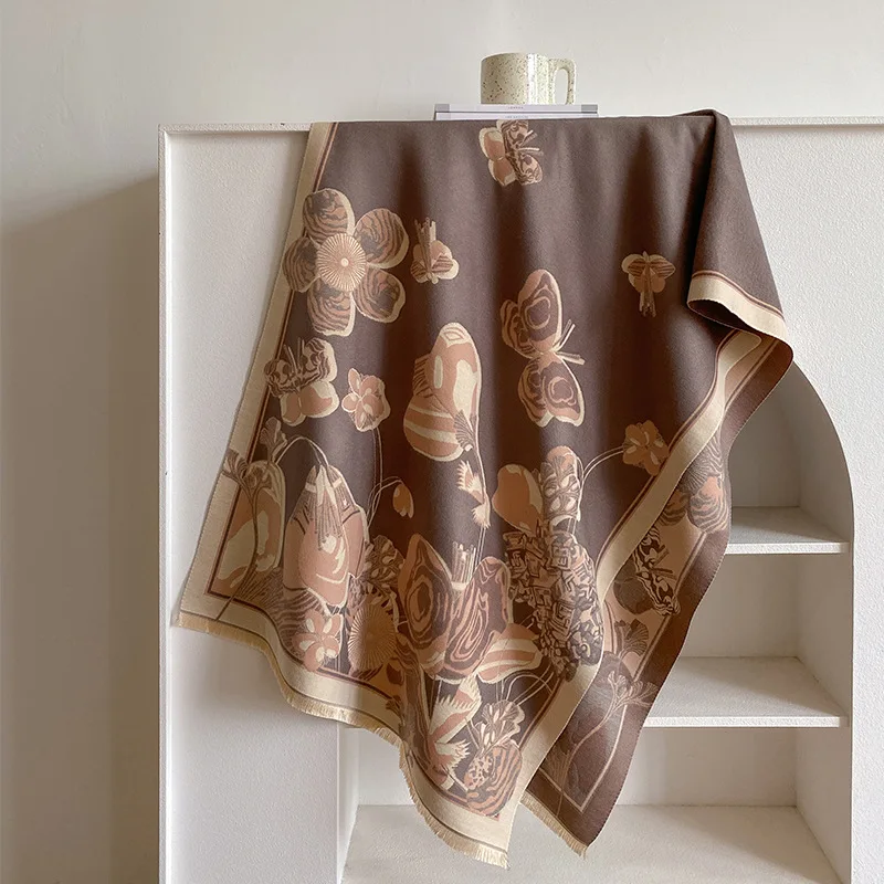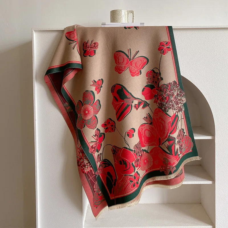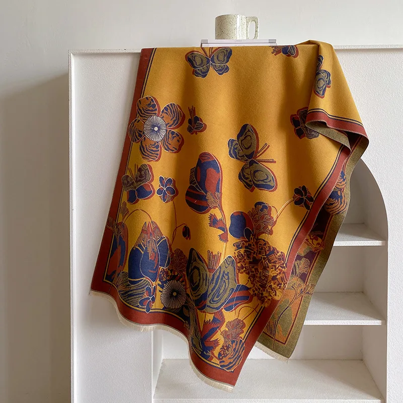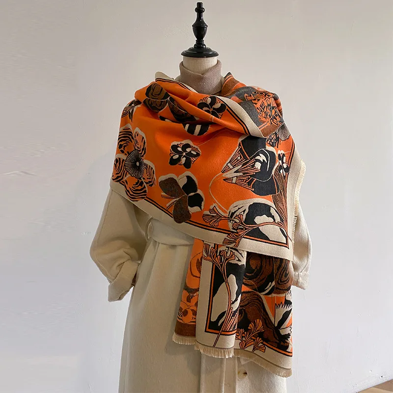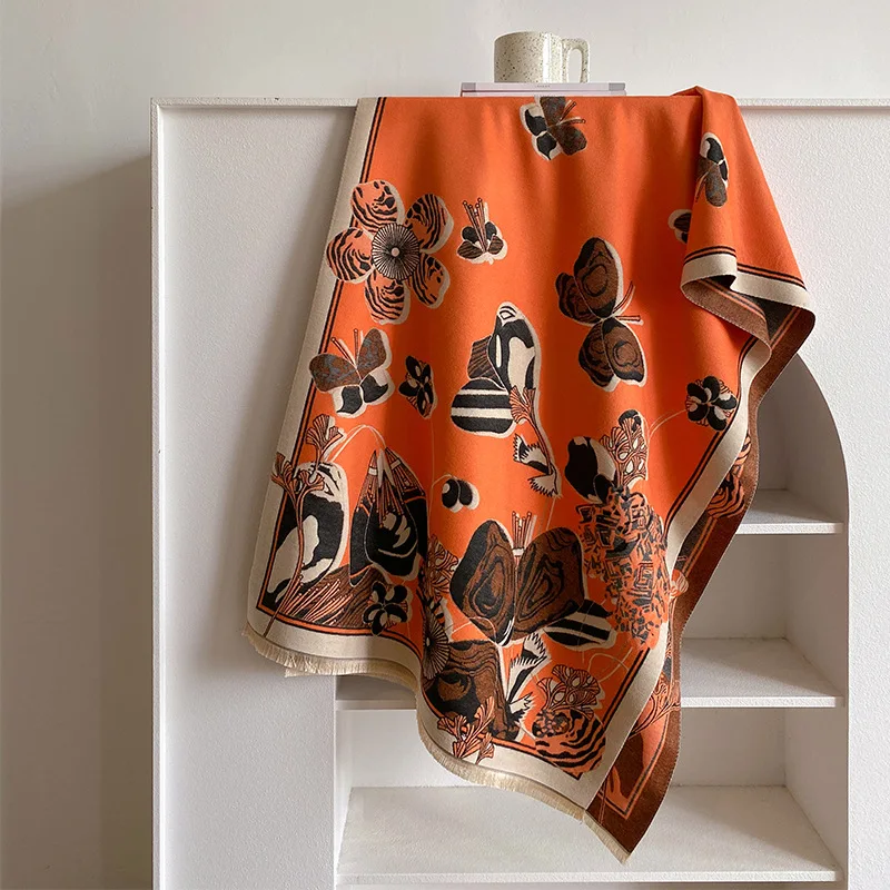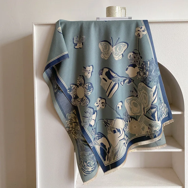 Fashion Winter Thick Flower Butterfly Pattern Print Pashmina Scarves Wrap Women Oversized Soft Cashmere Blanket Shawl Scarfs