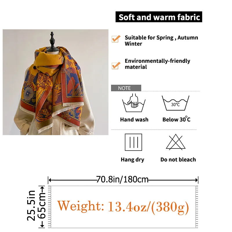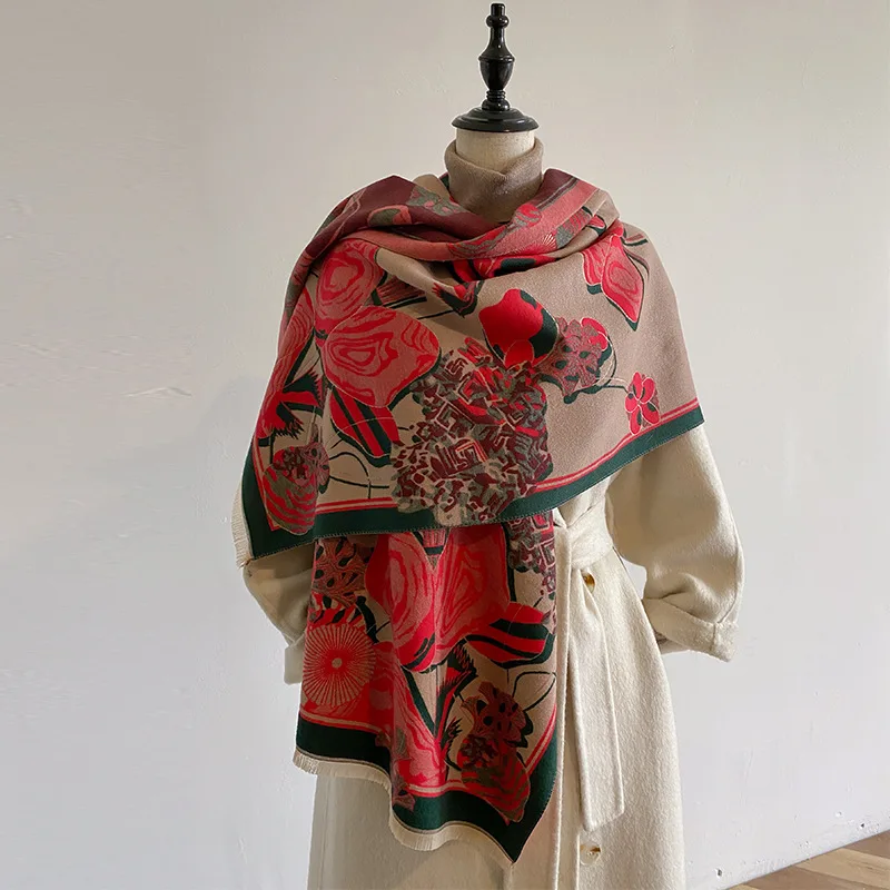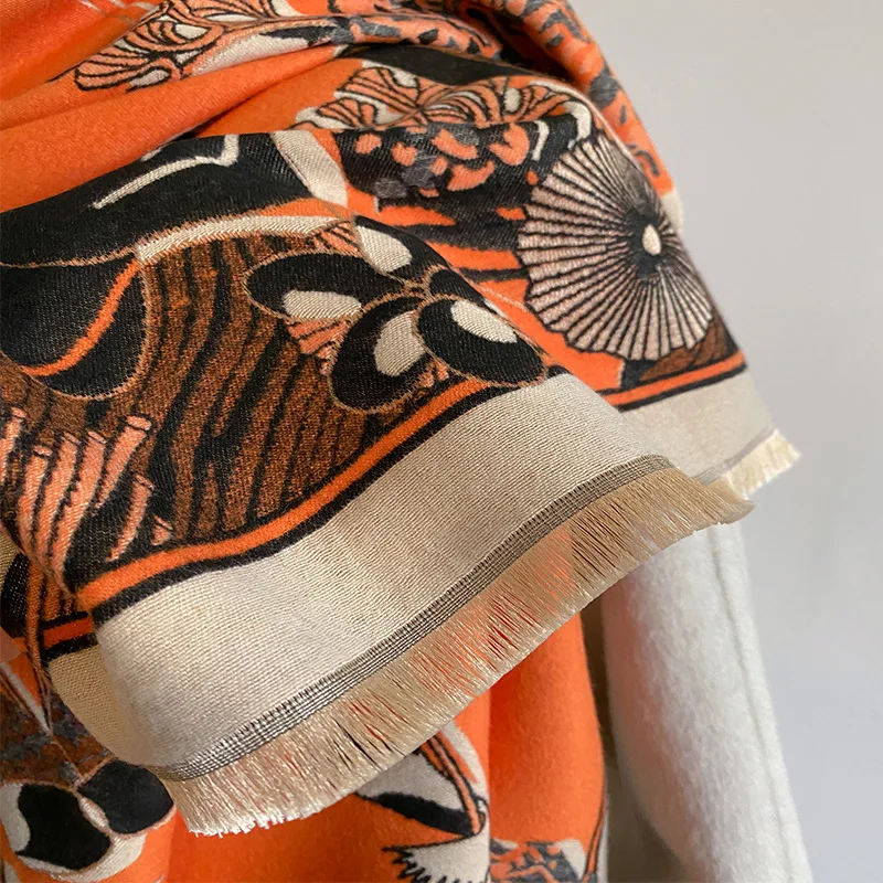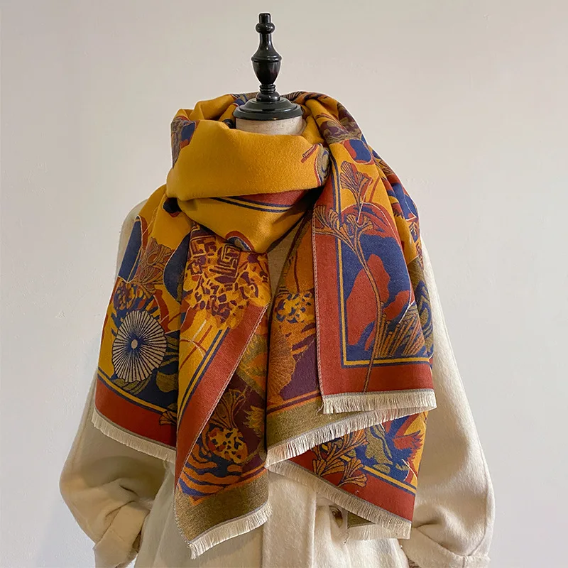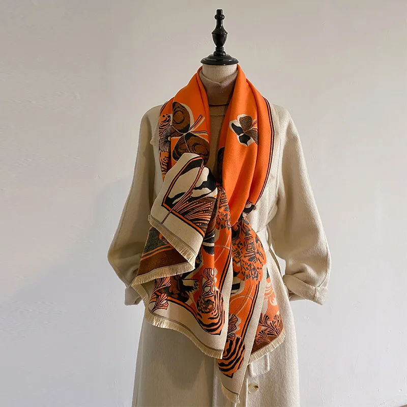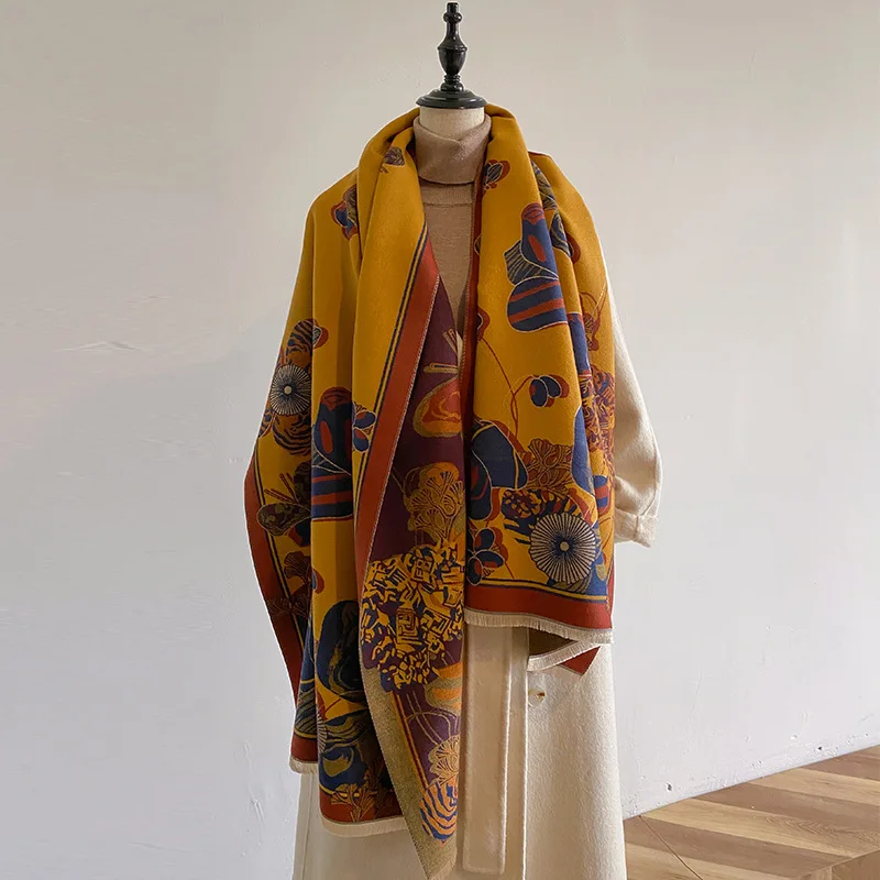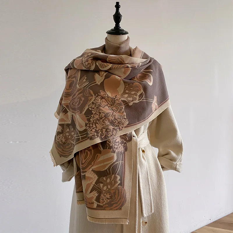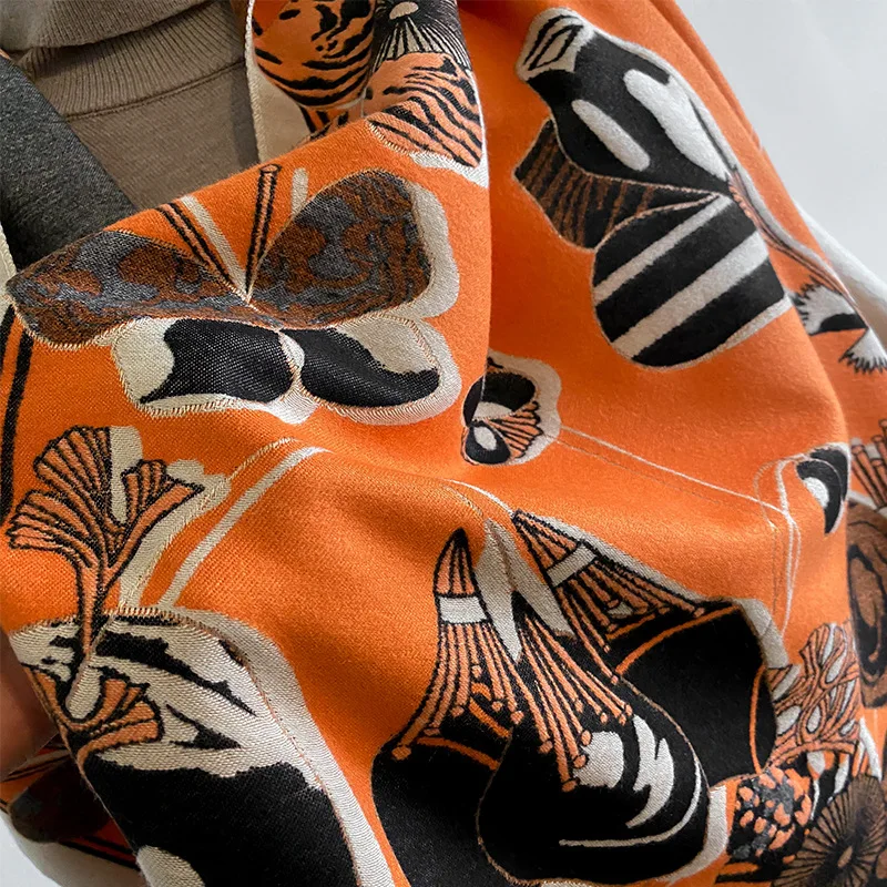 Fashion Winter Thick Flower Butterfly Pattern Print Pashmina Scarves Wrap Women Oversized Soft Cashmere Blanket Shawl Scarfs