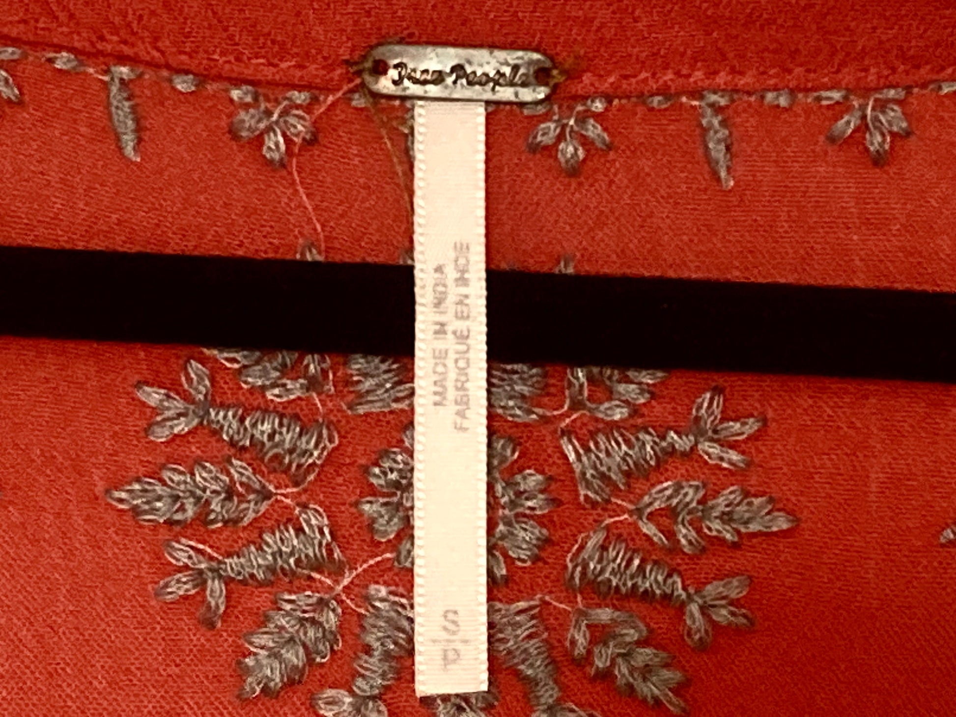 Free People Red Embroidered Kimono Cardigan Size Petite Small