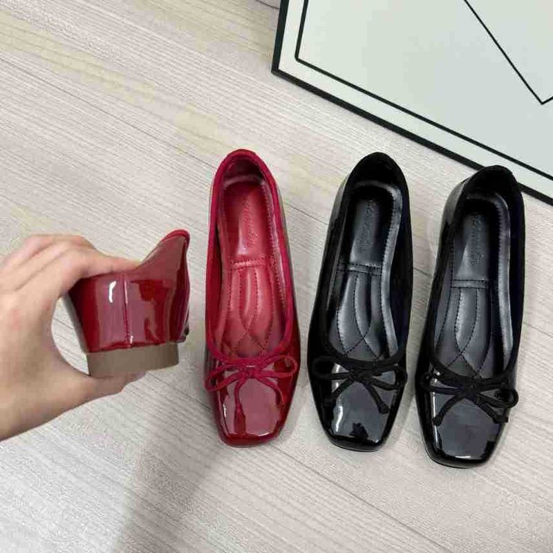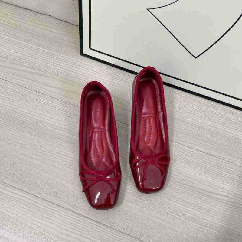 French Ballet Single Shoes 2024 Summer New Mary Jane High Heels Red Leather Shoes
