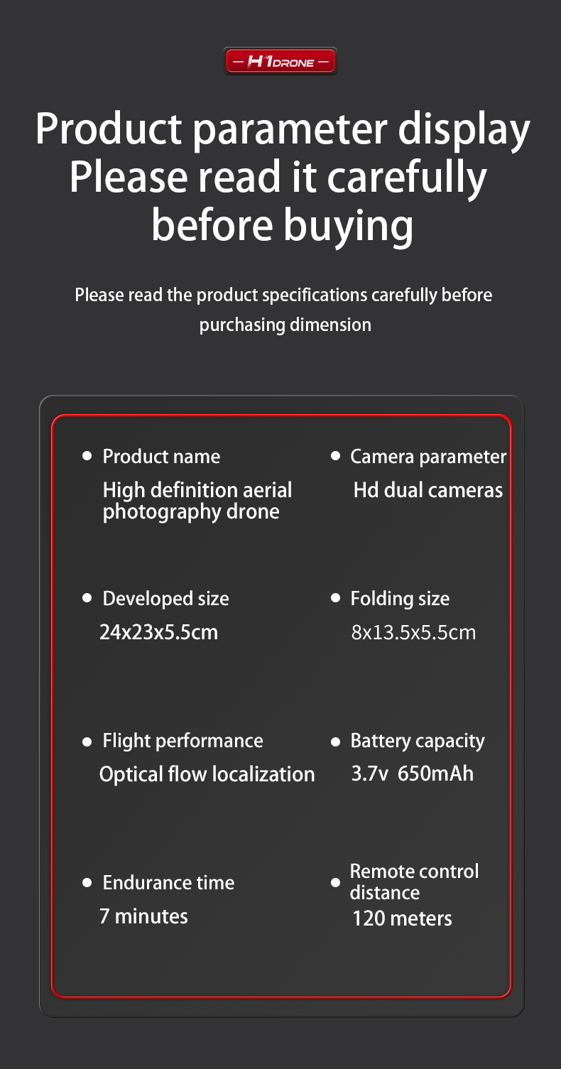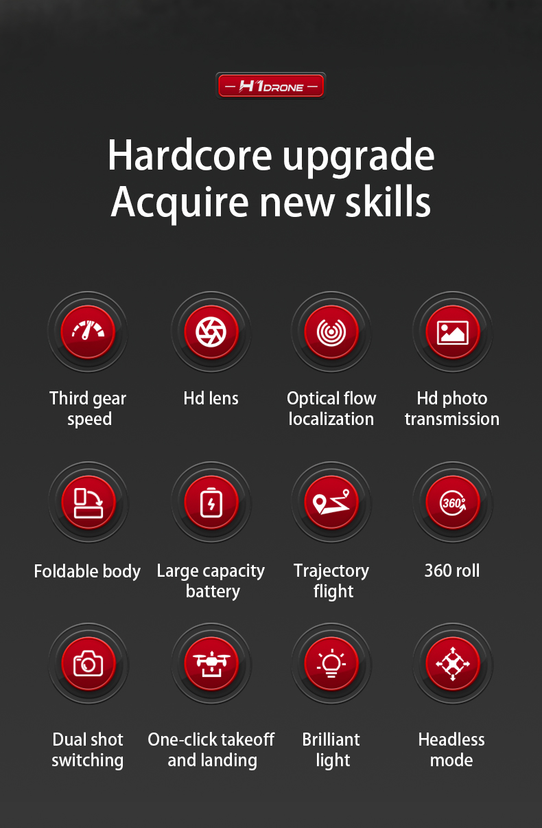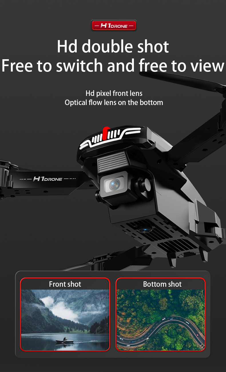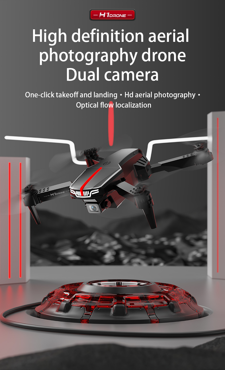 H1 Drone with Dual Cameras, Optical Flow Positioning, 360° Rolling, Headless Mode, One-Touch Takeoff/Landing, Gesture Control Photo/Video, Foldable RC Drone with Battery
