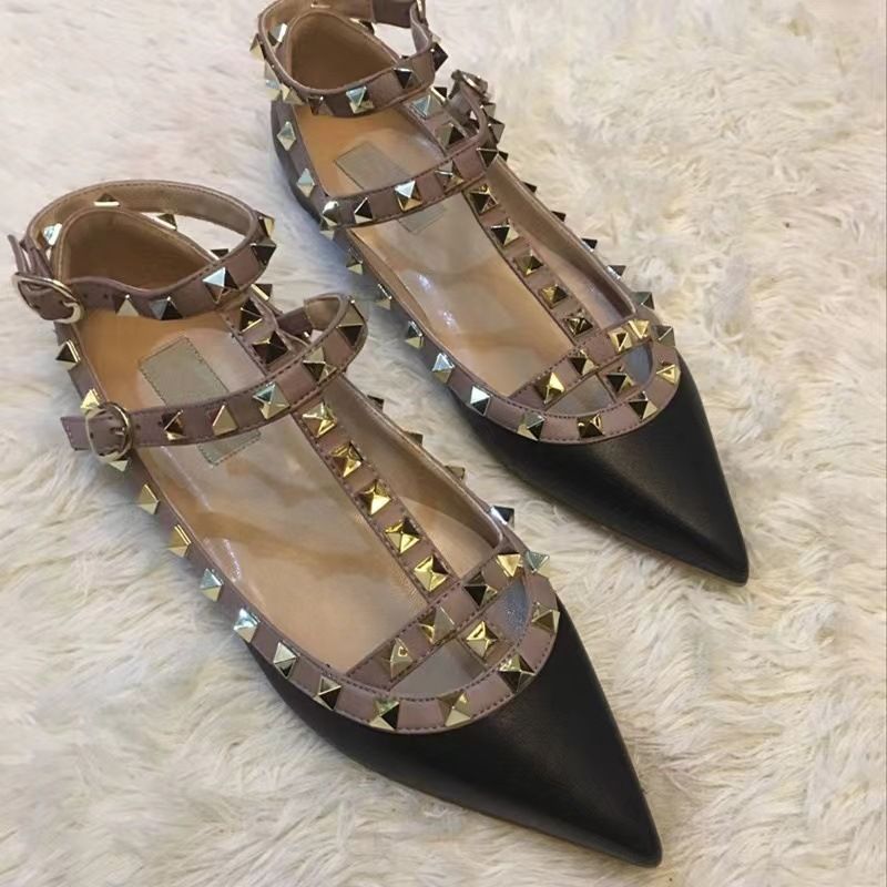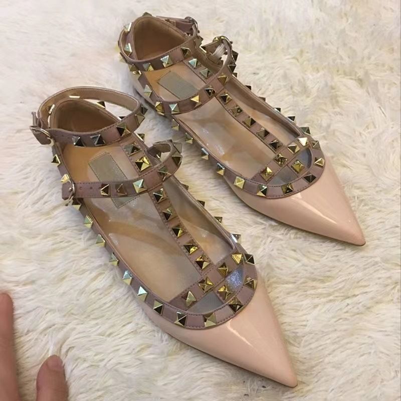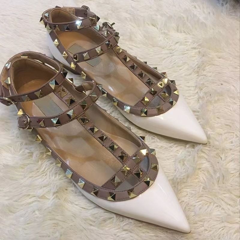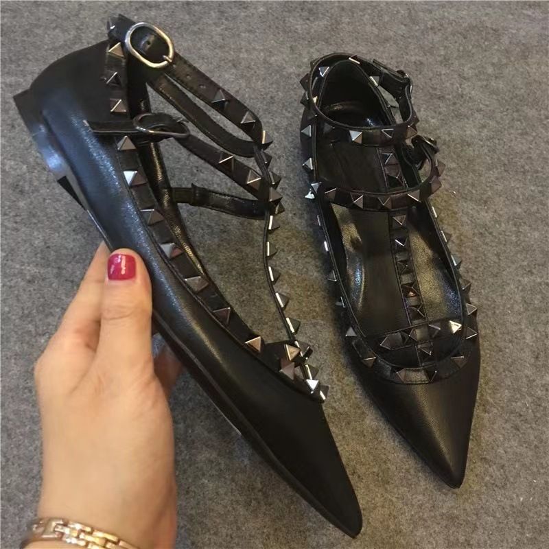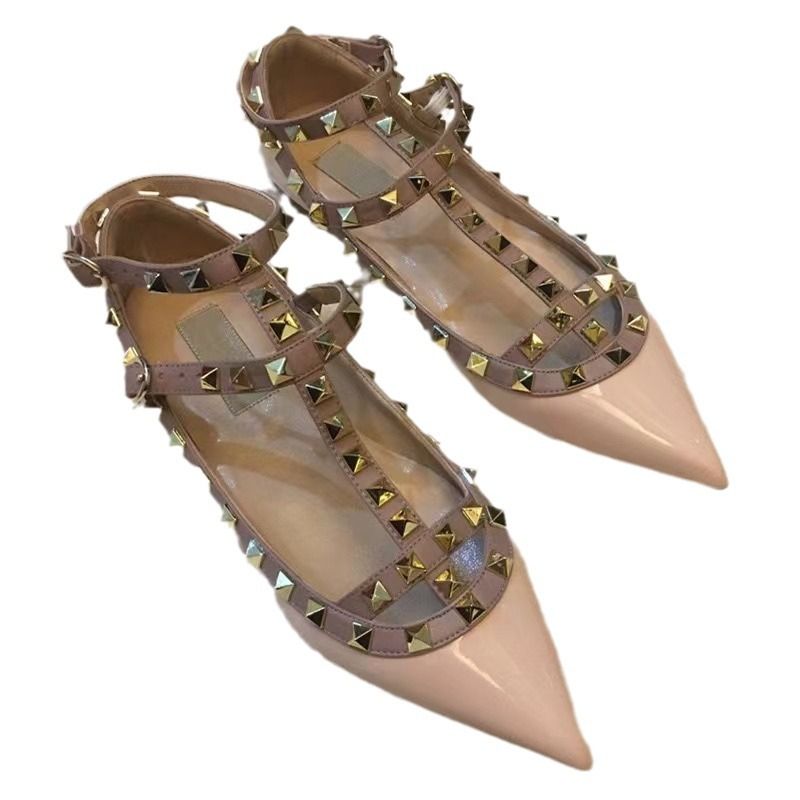 High Version V-Family Pointed Shallow Mouth Two Ring Willow Nail Shoes For Women's Leather Strap Temperament Flat Heels