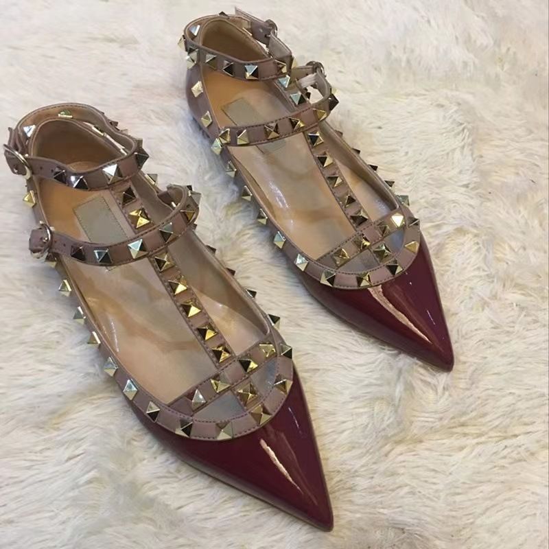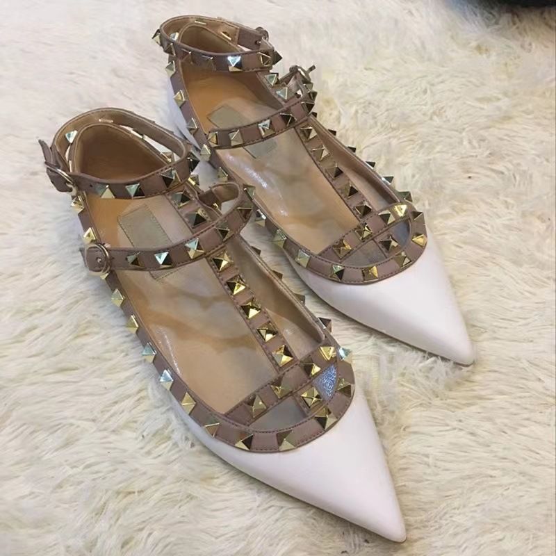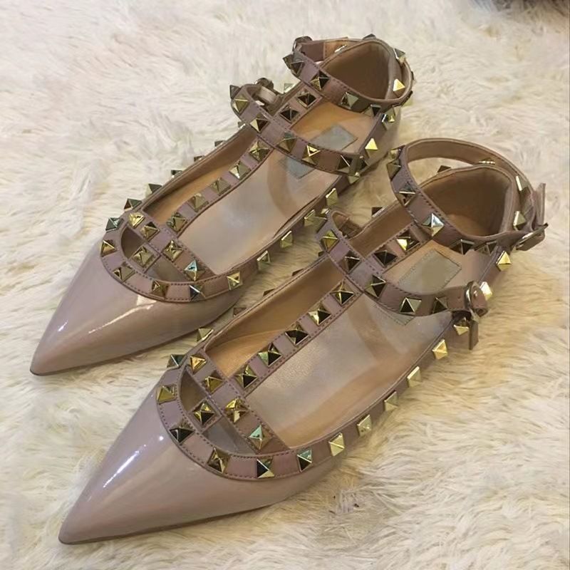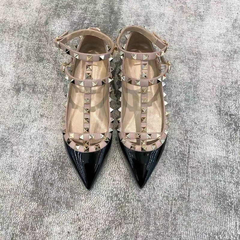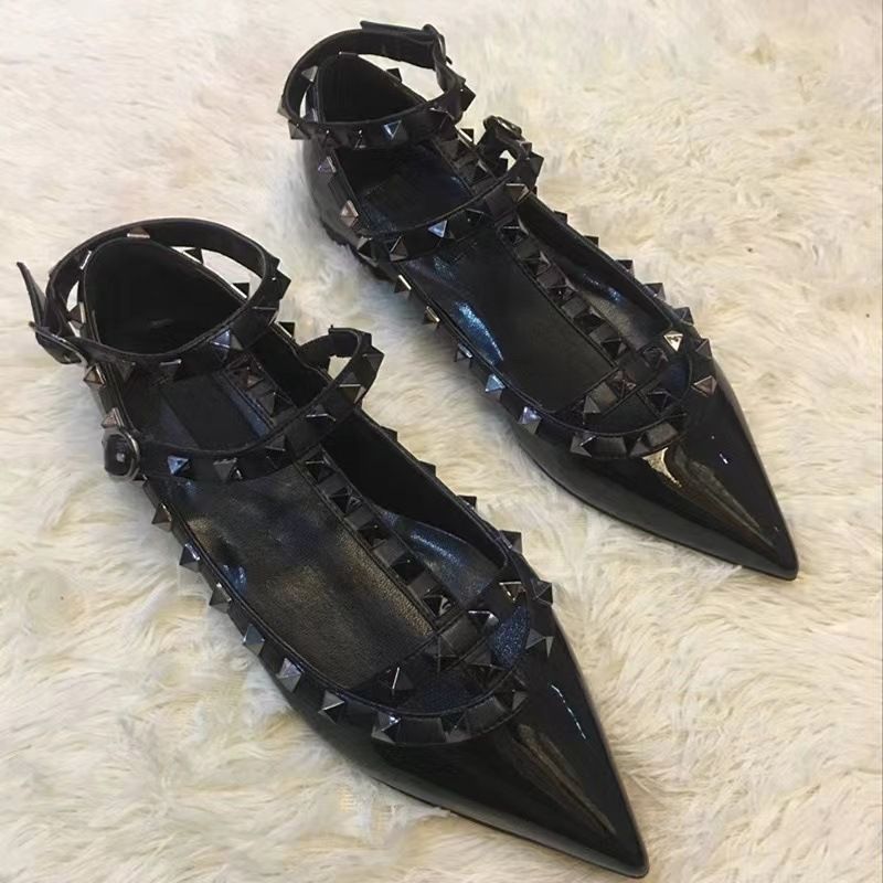 High Version V-Family Pointed Shallow Mouth Two Ring Willow Nail Shoes For Women's Leather Strap Temperament Flat Heels