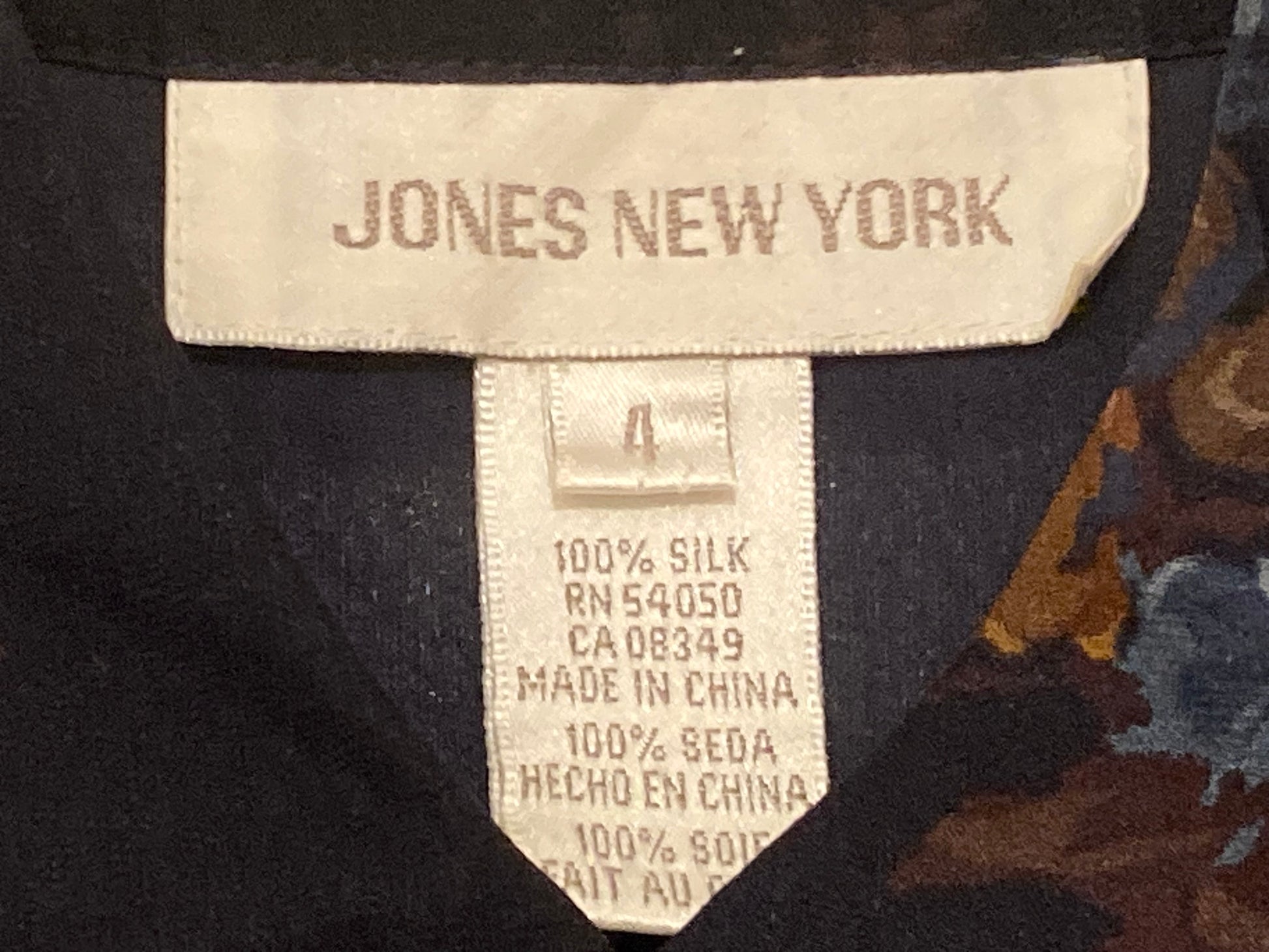 Jones New York 100% Silk Floral Long Sleeve Women's Top Size 4