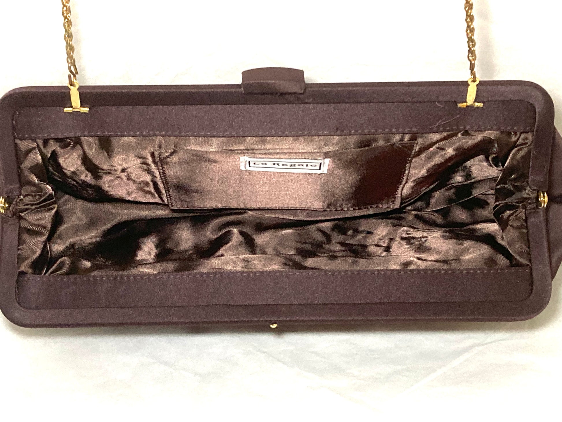 This elegant brown clutch features a stylish gold chain, perfect for any occasion. Its sophisticated design makes it a must-have accessory.