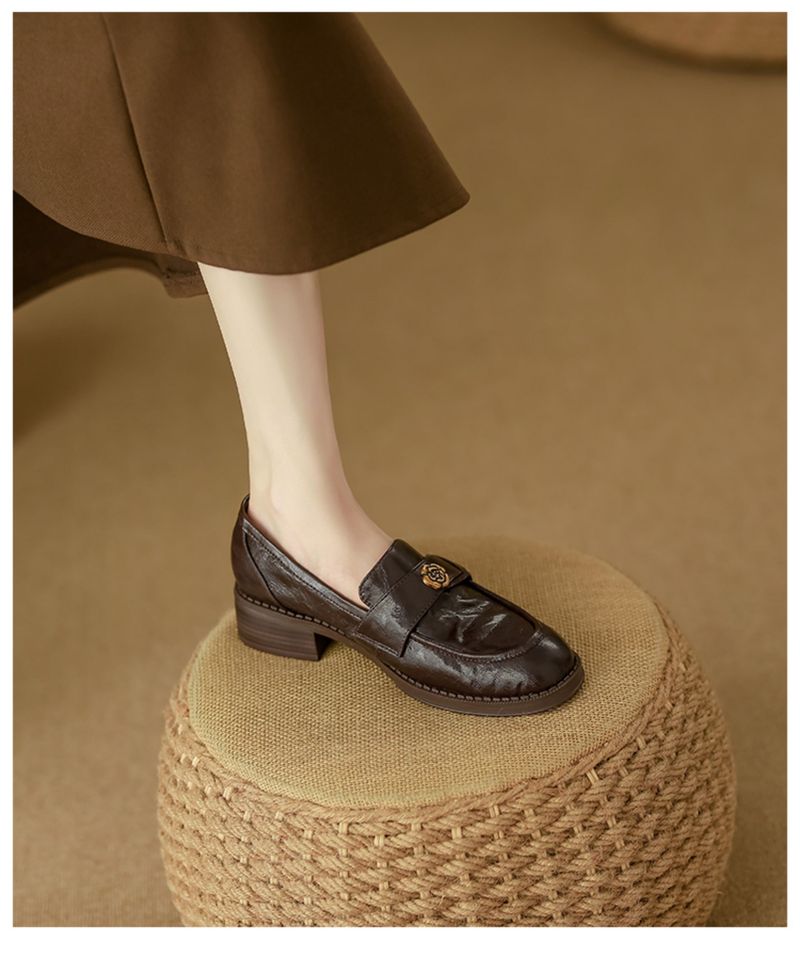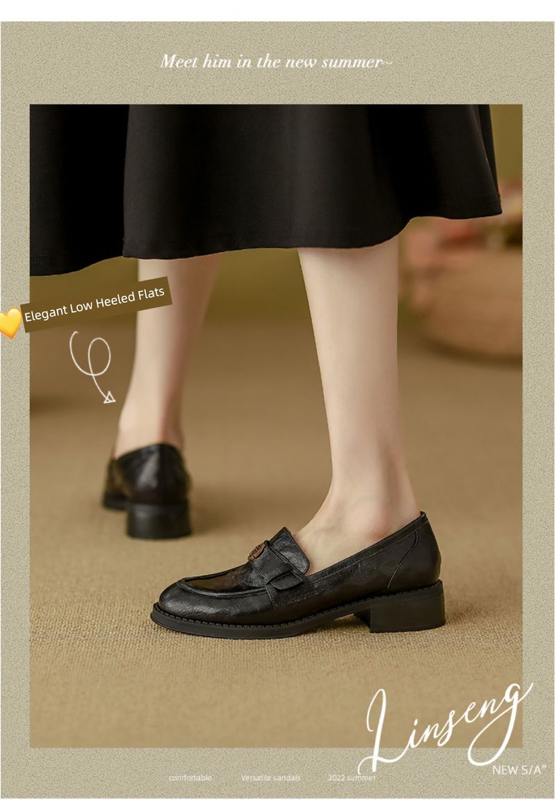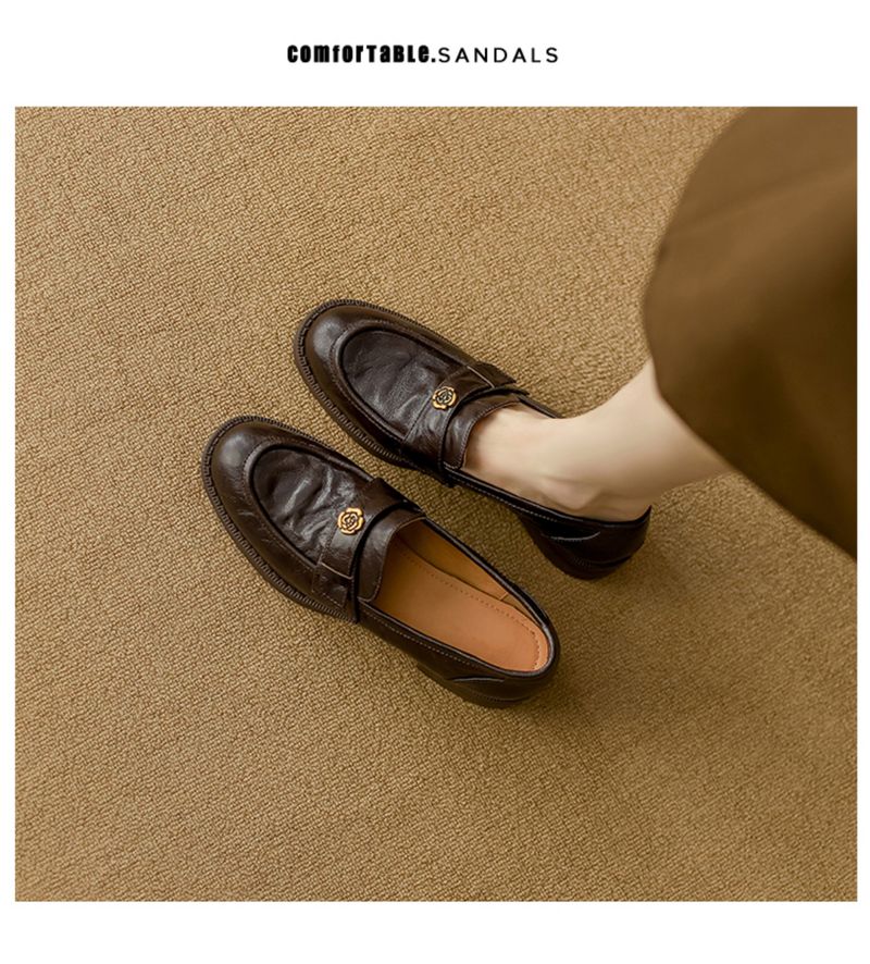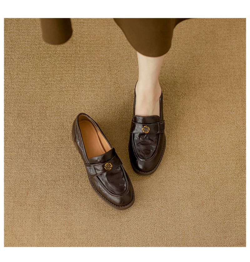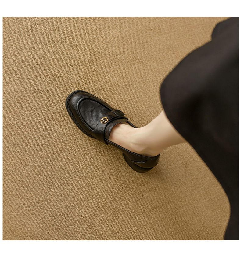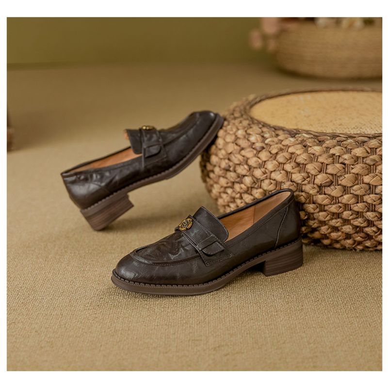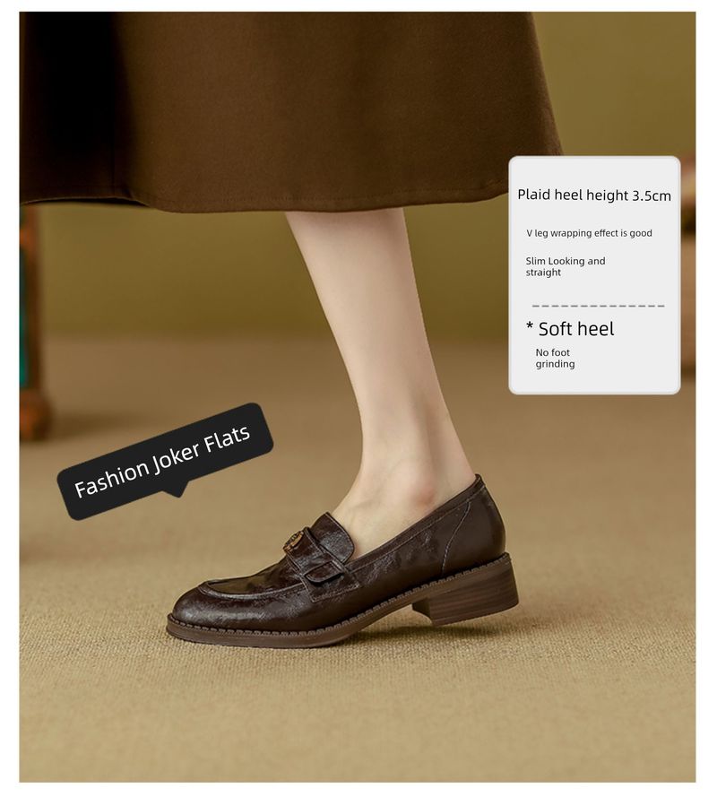 Mute Genuine Loafers Women British Style Single 2025 Spring New Show Feet Gold Coins Thick Bottom Small Leather Shoes