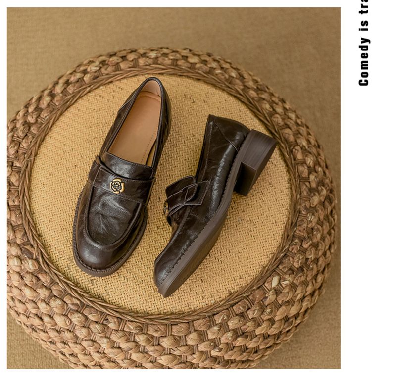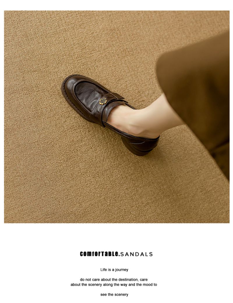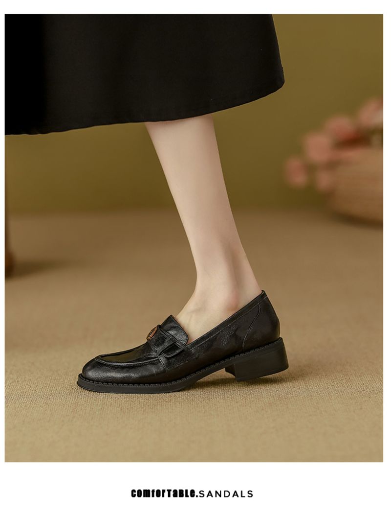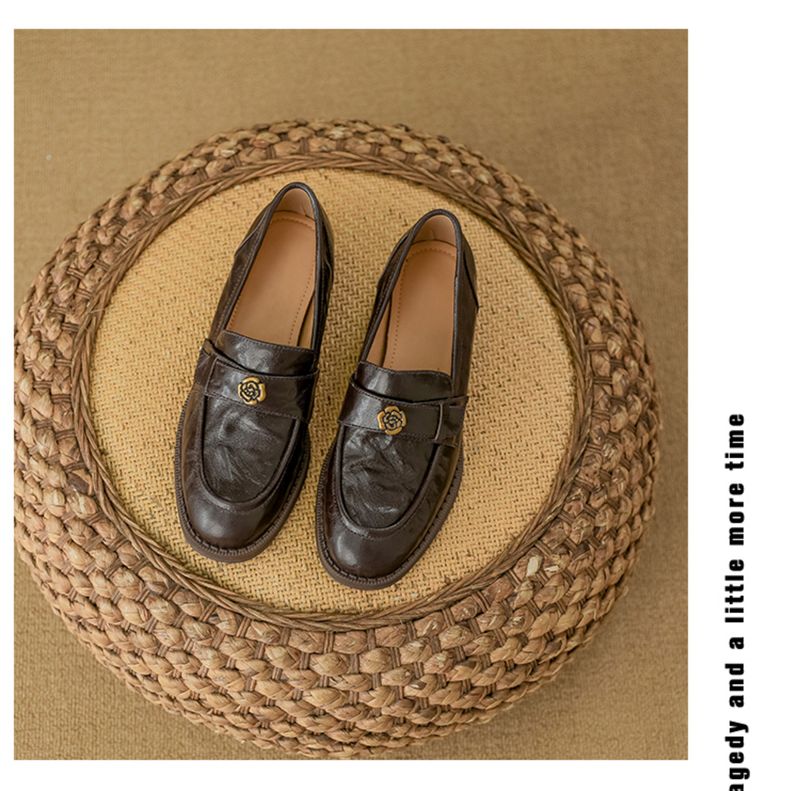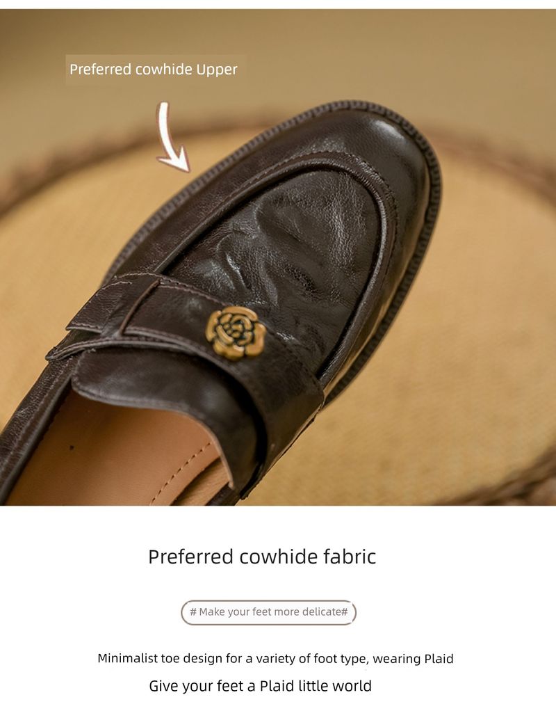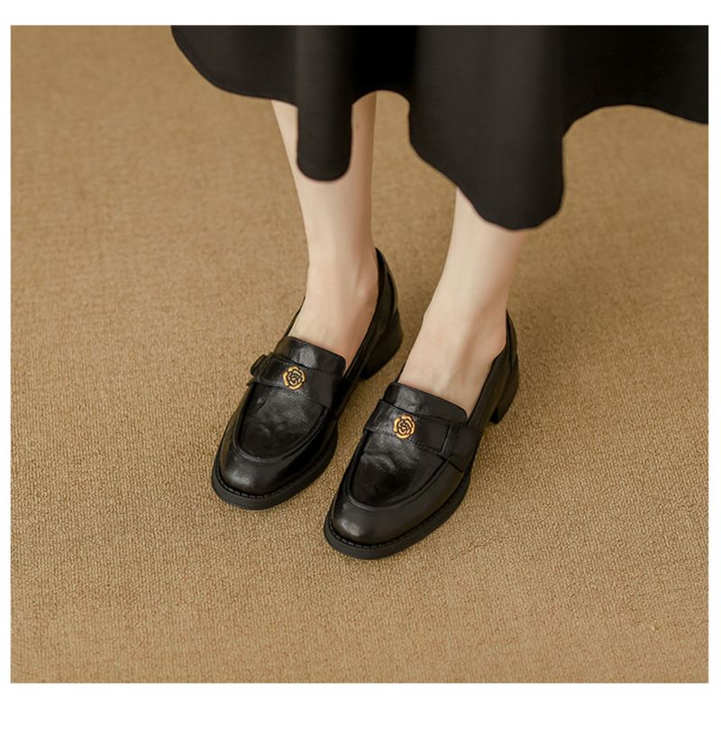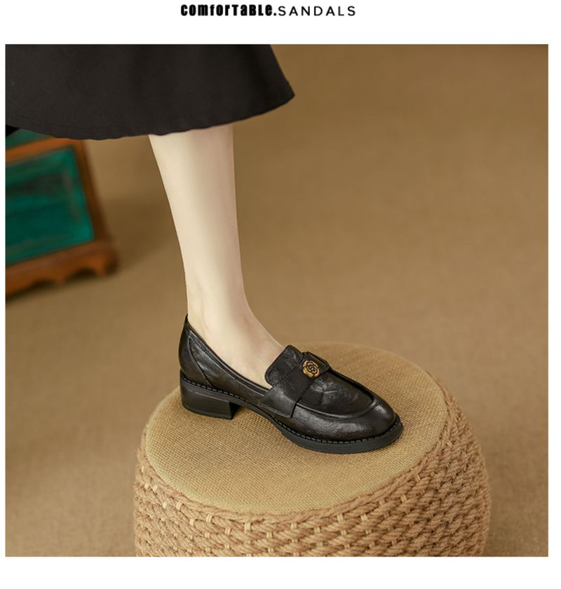 Mute Genuine Loafers Women British Style Single 2025 Spring New Show Feet Gold Coins Thick Bottom Small Leather Shoes