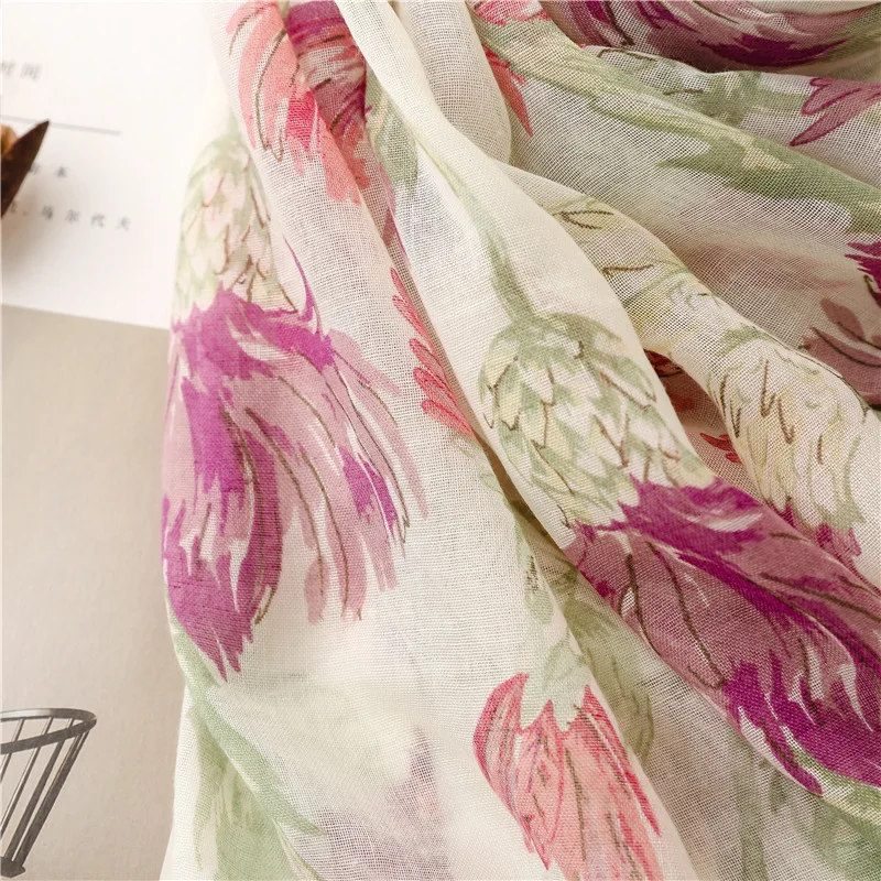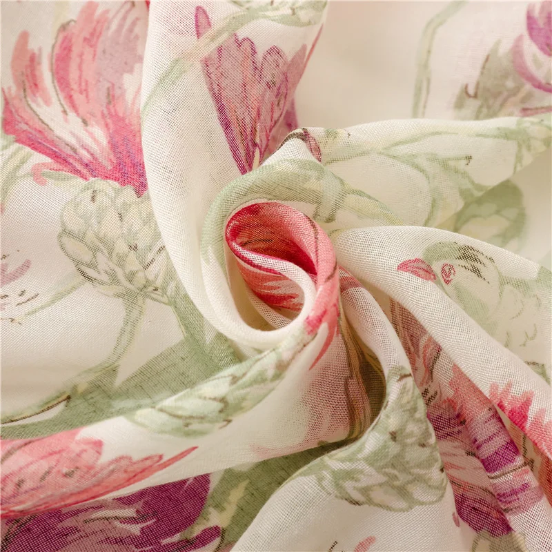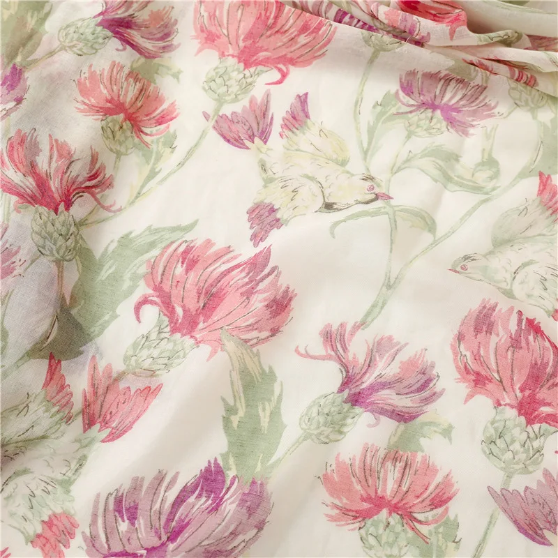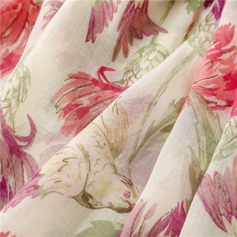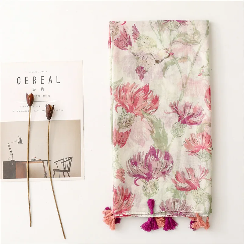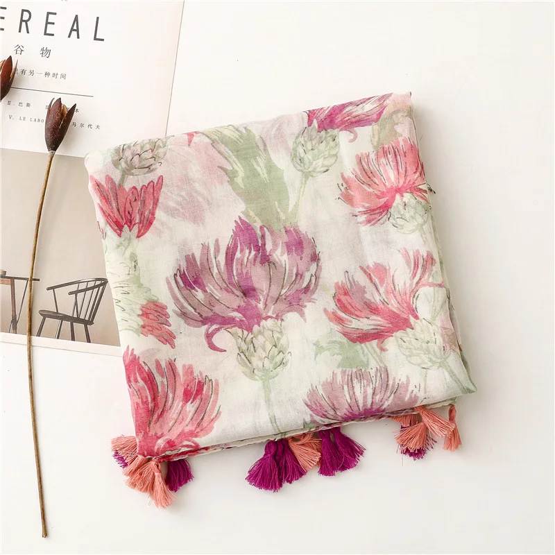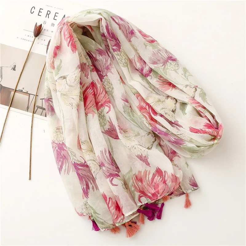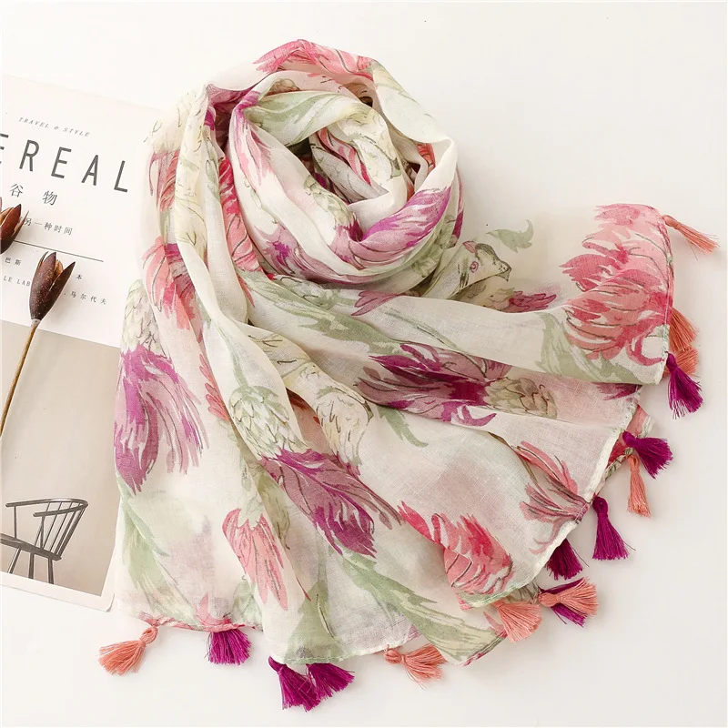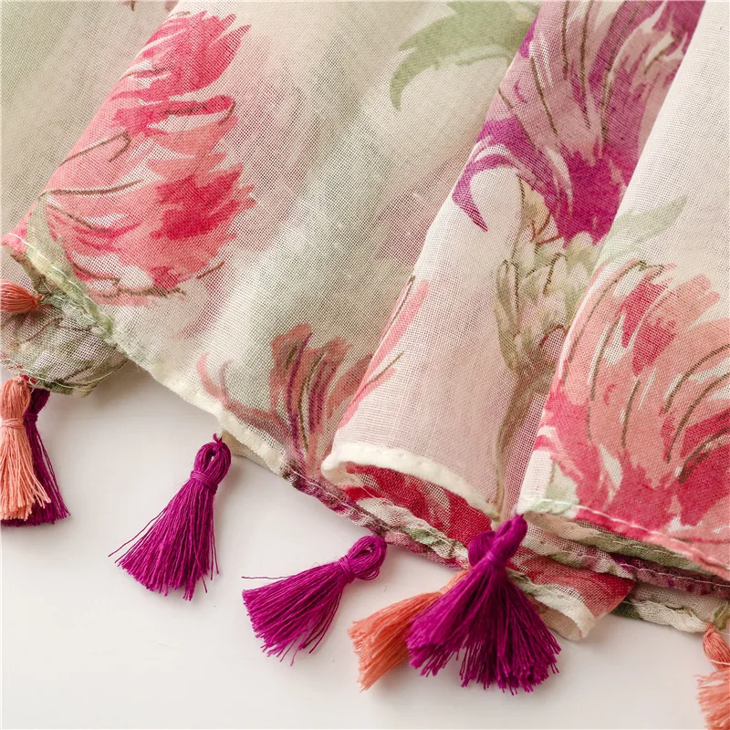 New Fancy Women Elegant Red Flower Print Scarves Stoles Ethnic Style Soft Long Floral Printed Cotton Scarves Shawls for Women
