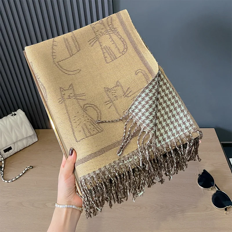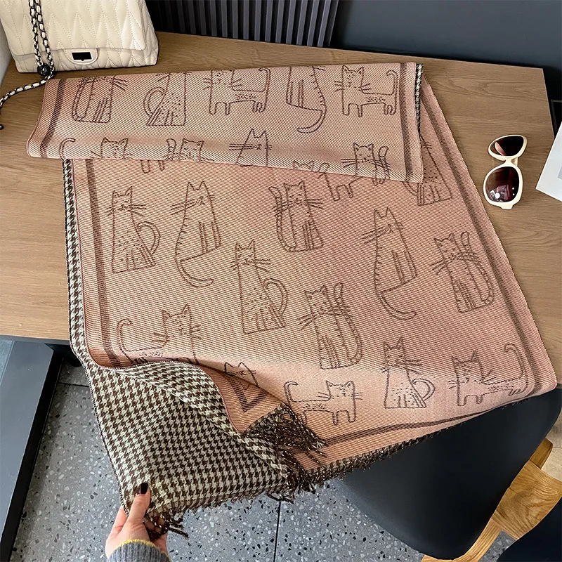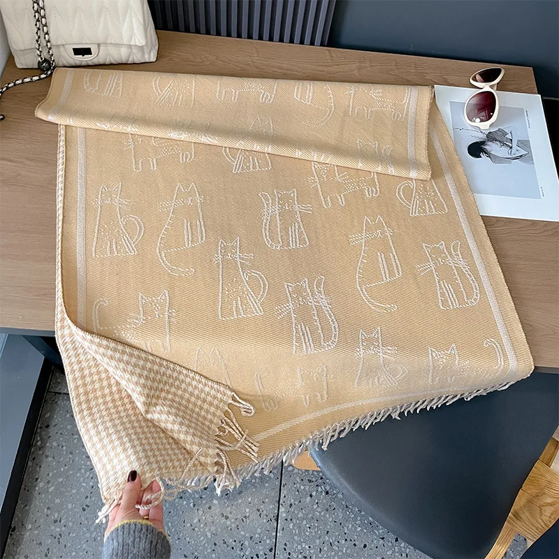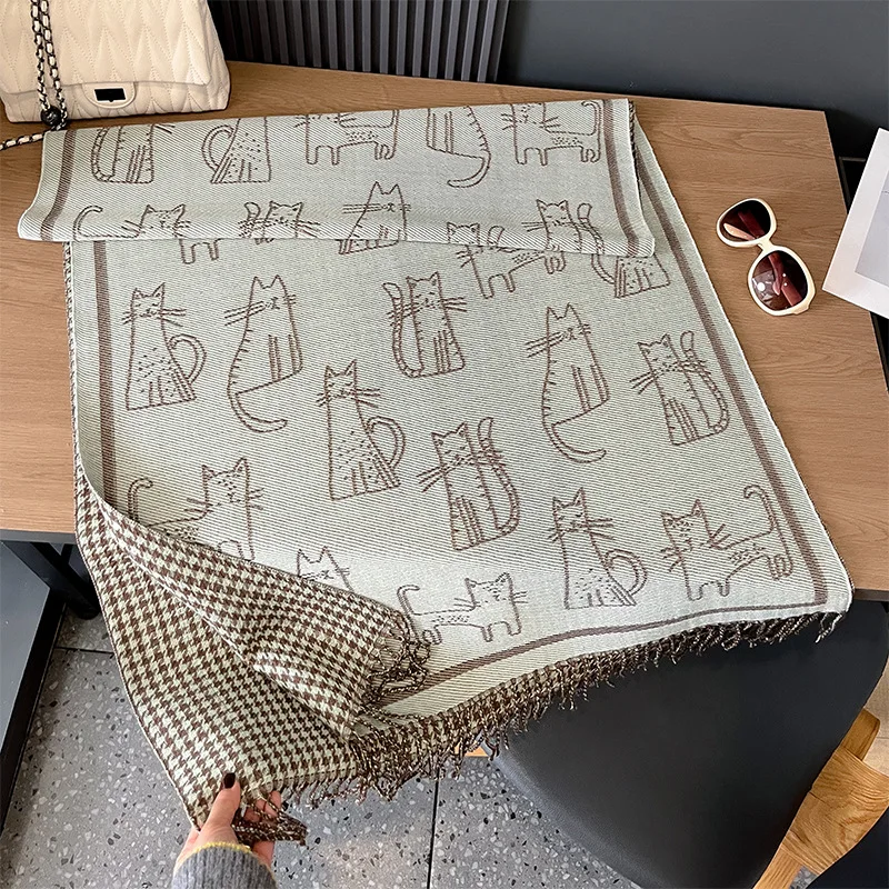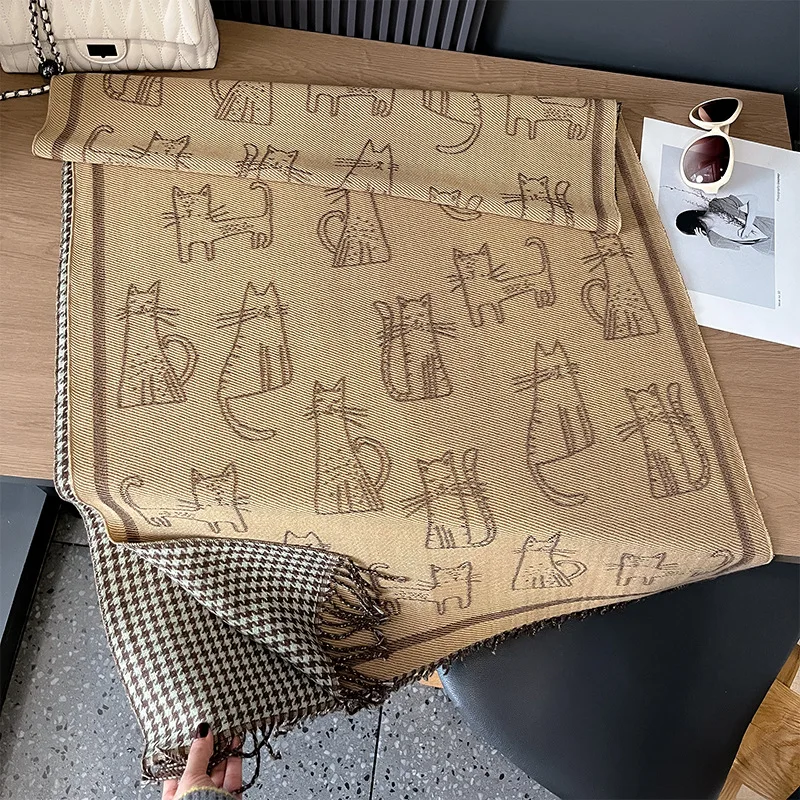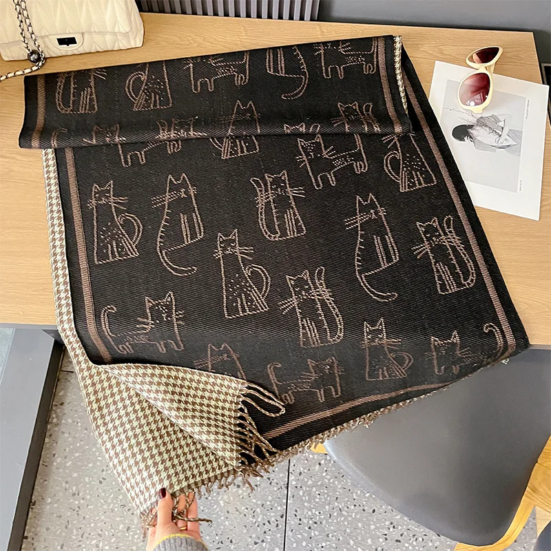 New Winter Scarves Cashmere Women's Shawl Warm Double-Sided Thick Lady Fashion Pashmina Cat Print Wraps