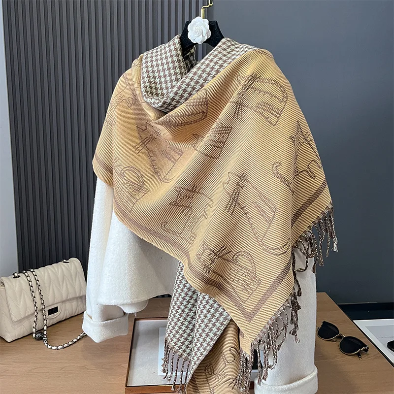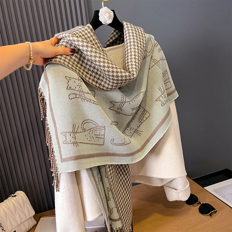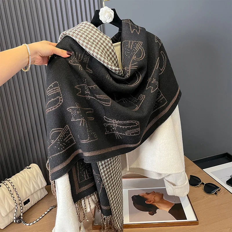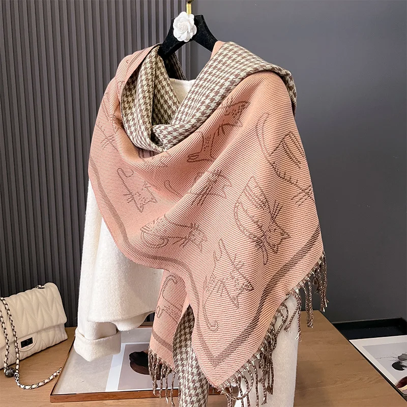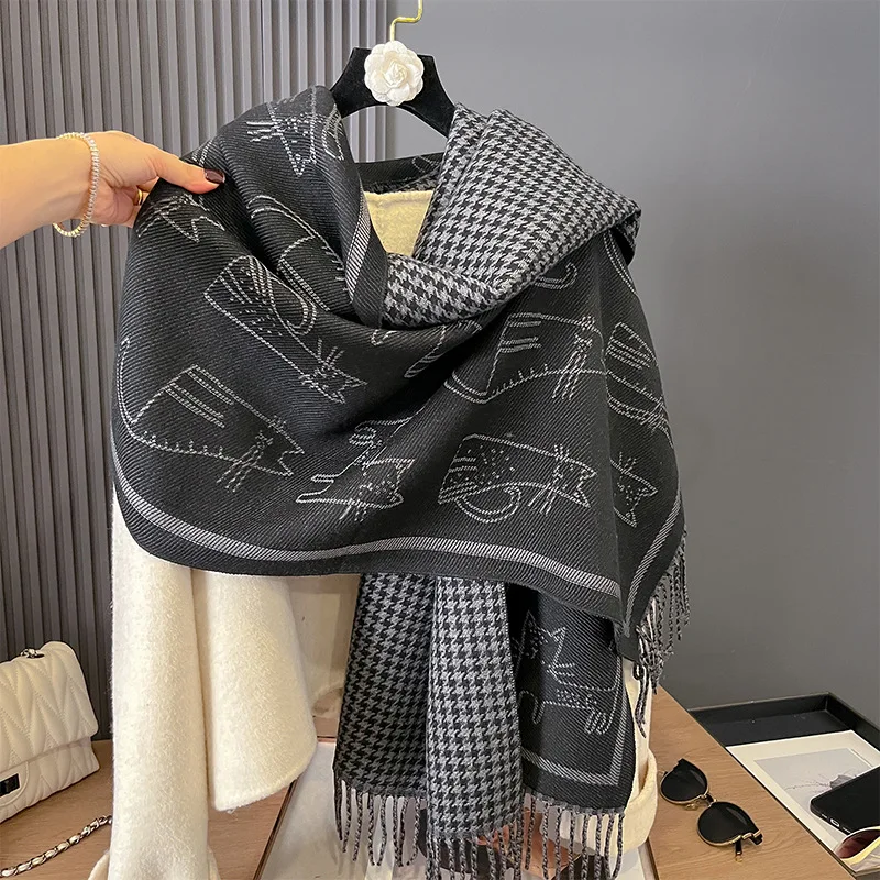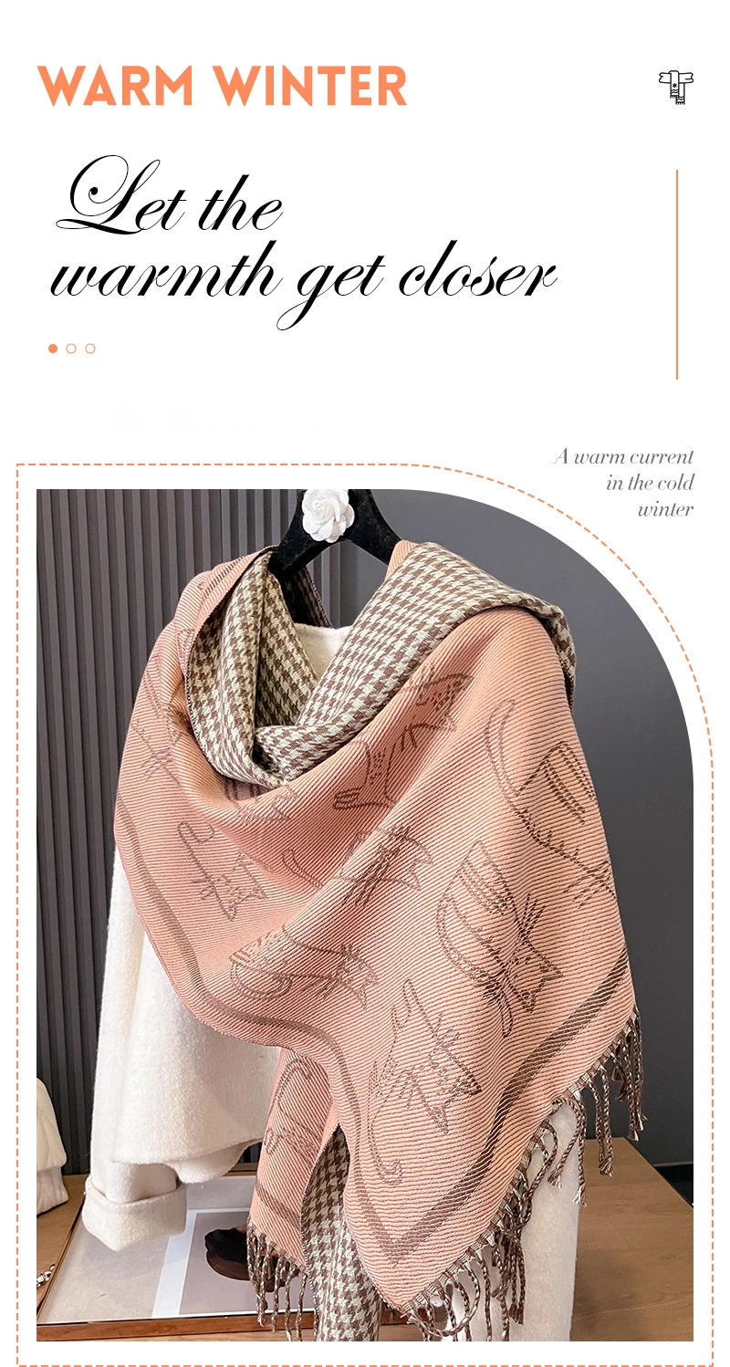 New Winter Scarves Cashmere Women's Shawl Warm Double-Sided Thick Lady Fashion Pashmina Cat Print Wraps