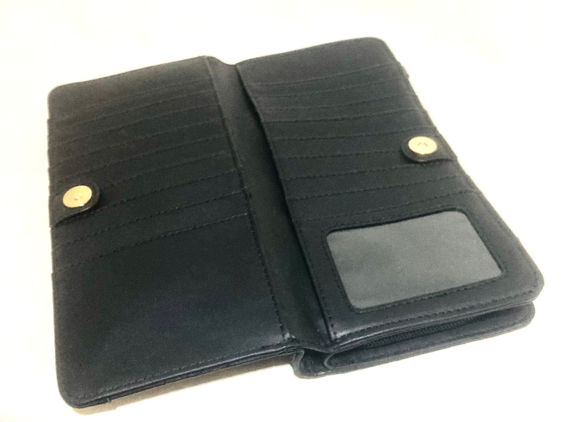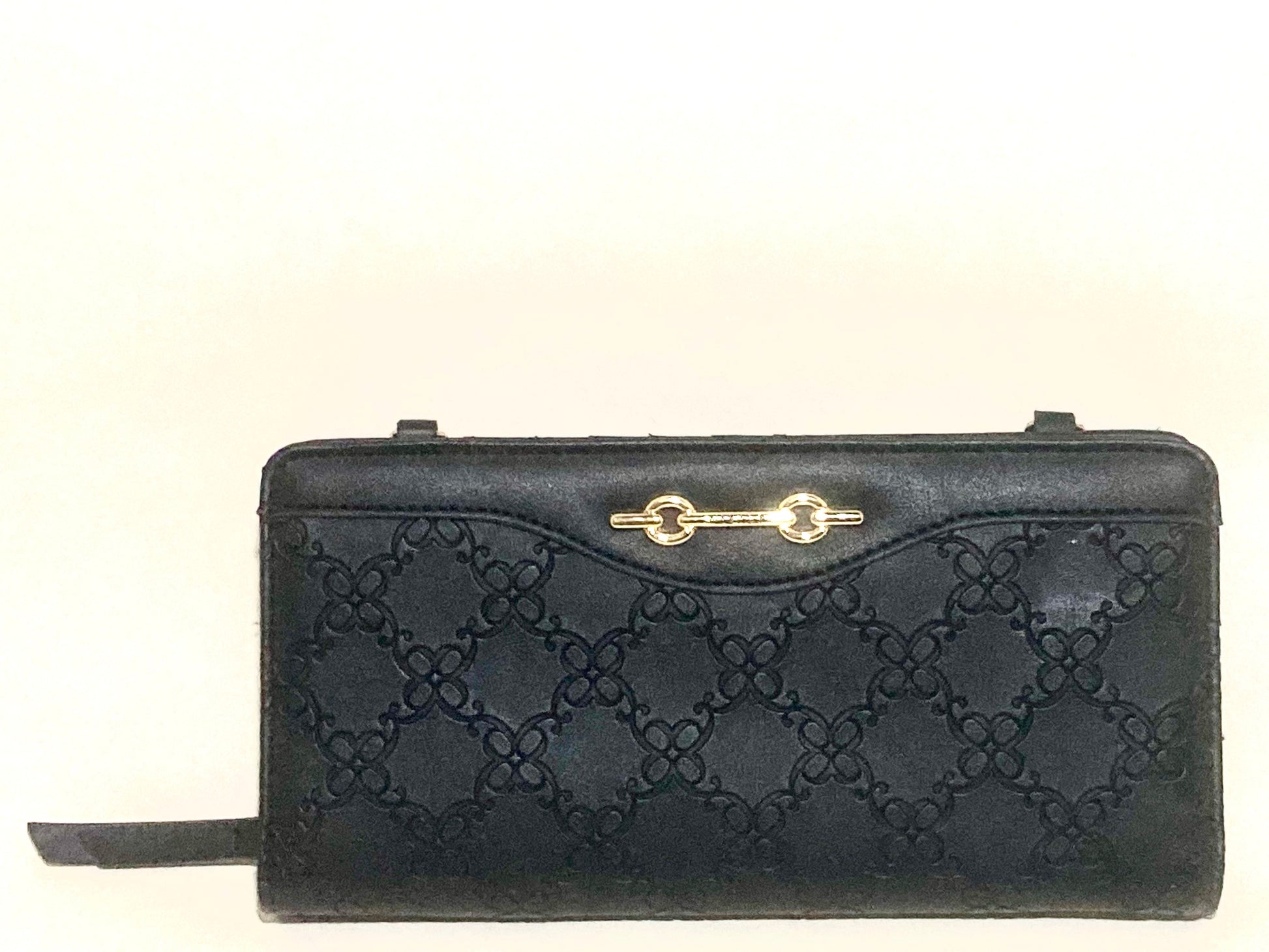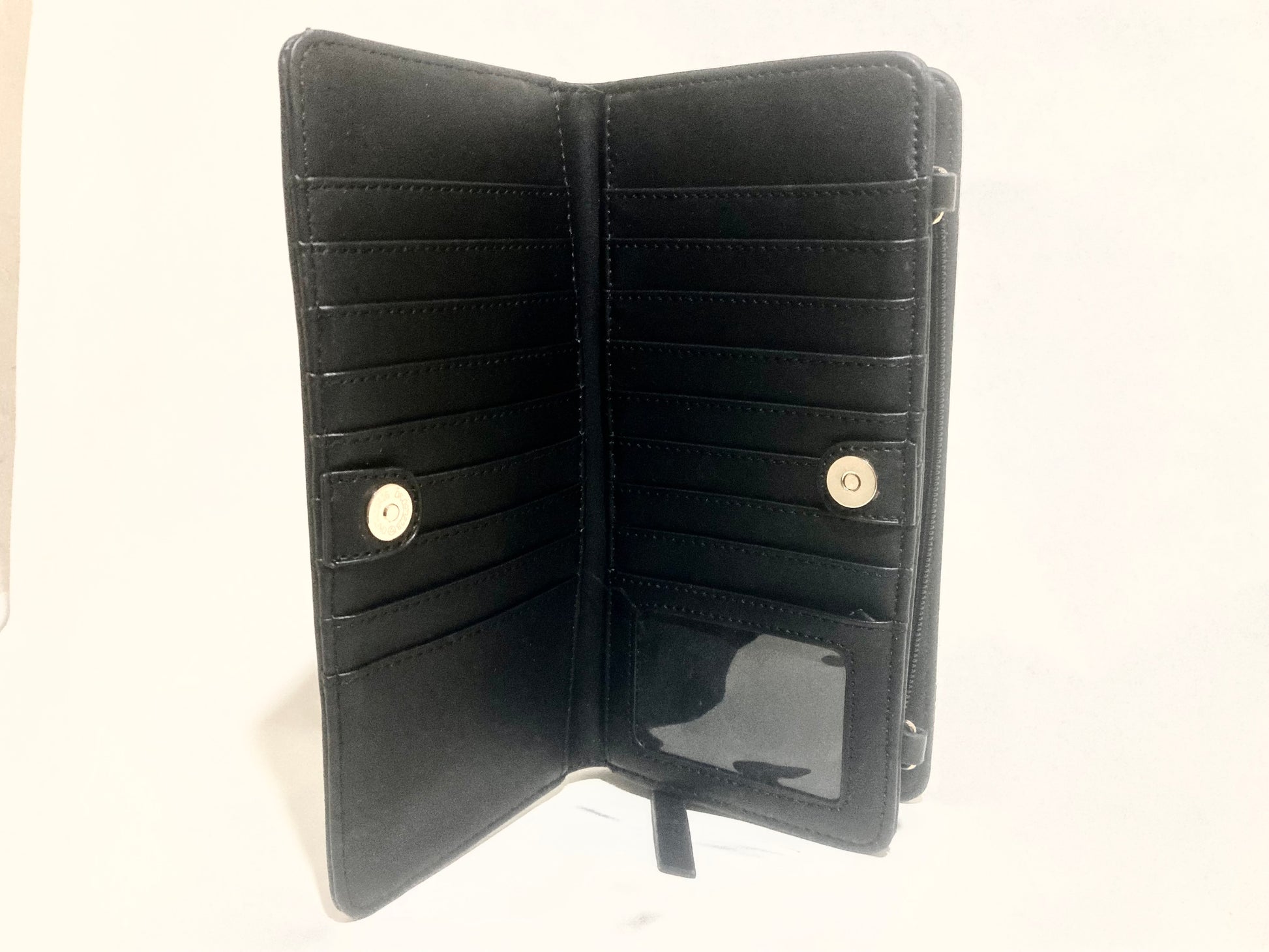 Chic Nine West wallet with embossed pattern. Sleek black design. Ideal for everyday use. It has 18 credit card slots, 4 bill compartments and an ID window. Like new condition.