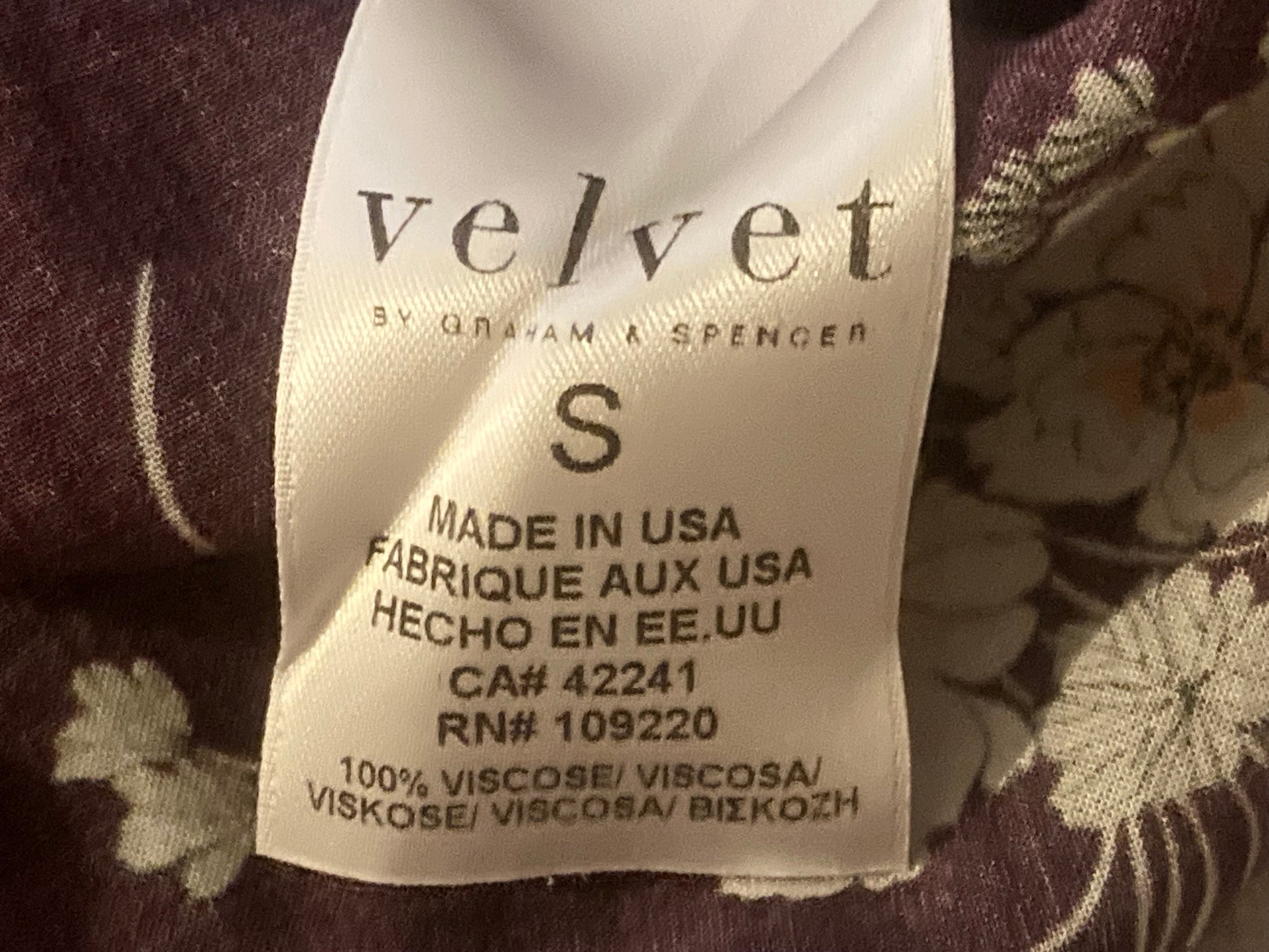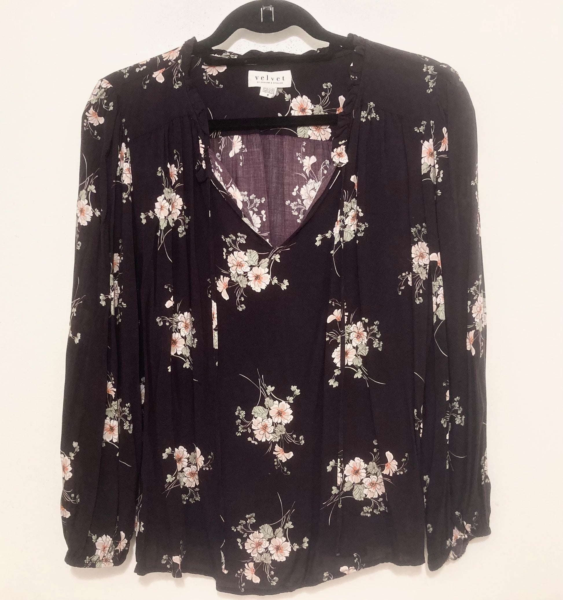 Velvet by Graham & Spencer Dark Plum Floral Blouse Size Small