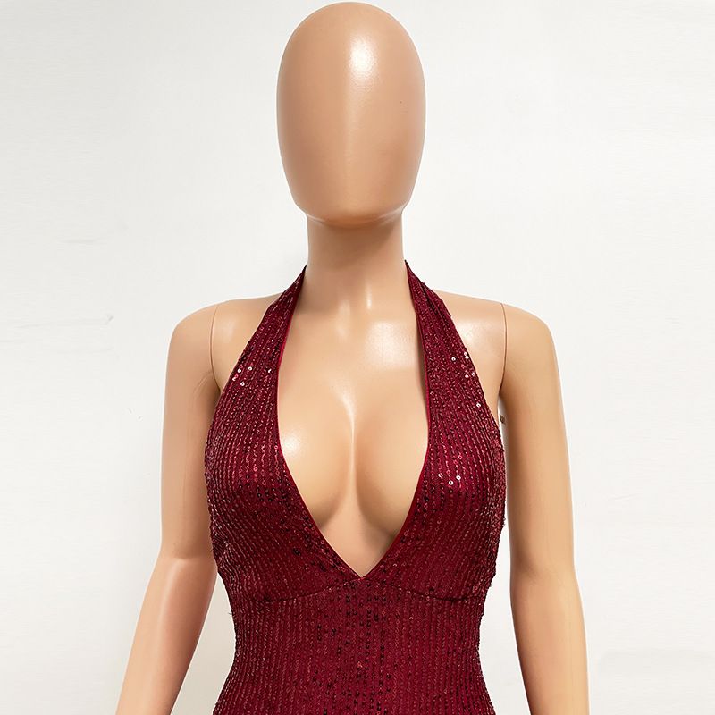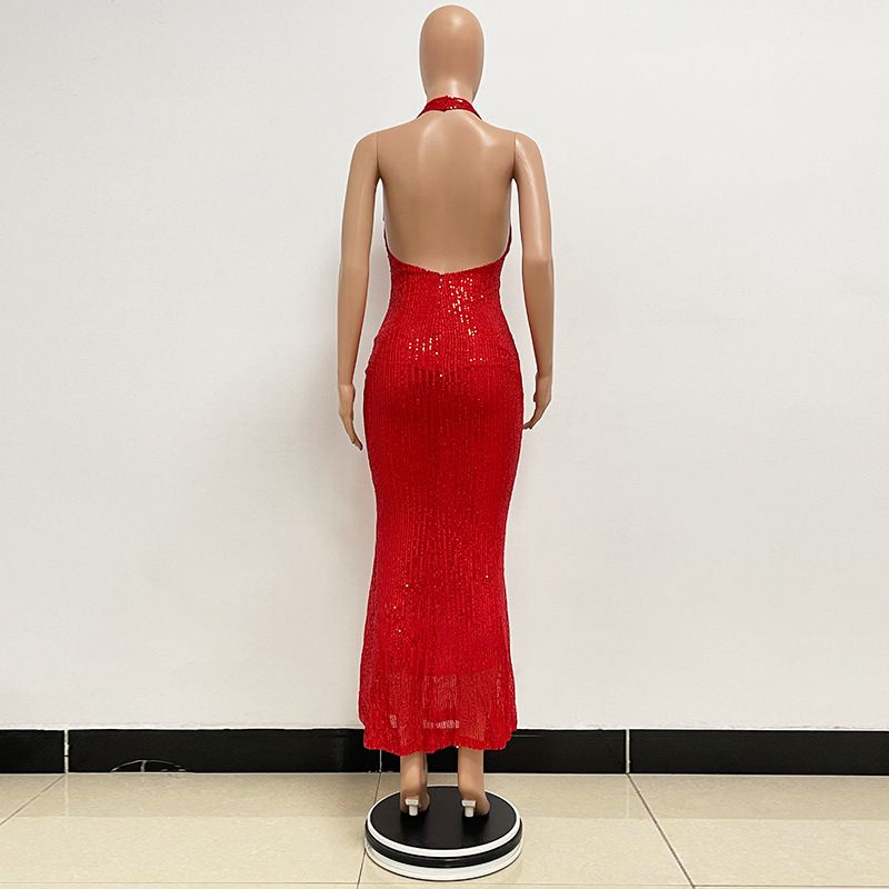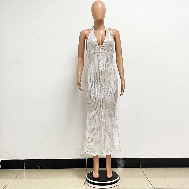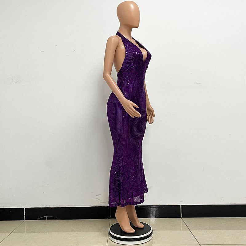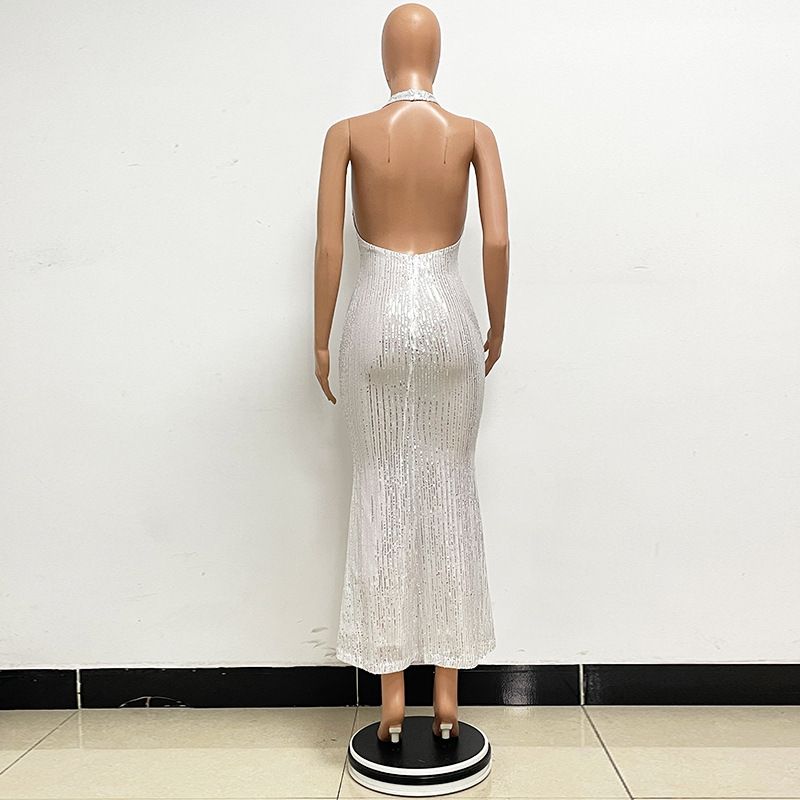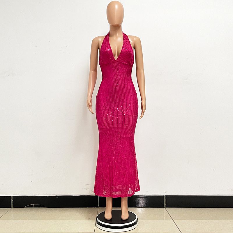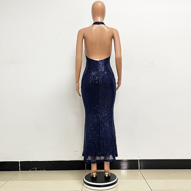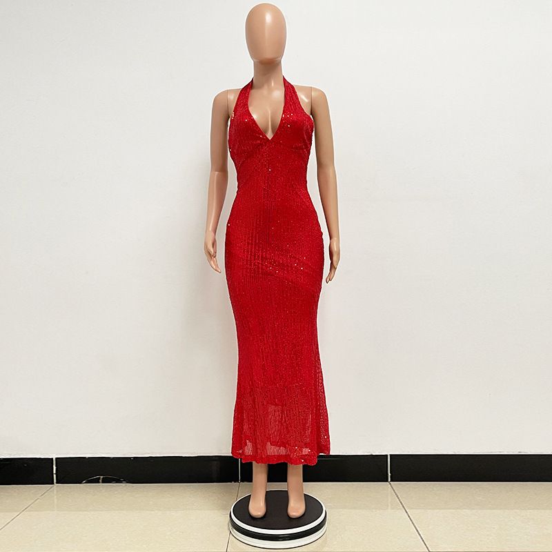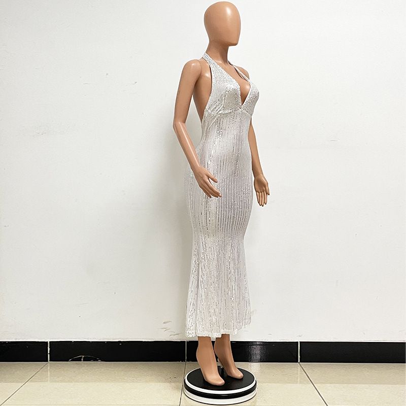 Women's Clothing Deep V Halter Neck Backless Dress Holiday Style Long Fishtail Dress