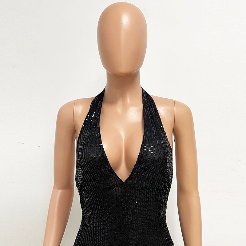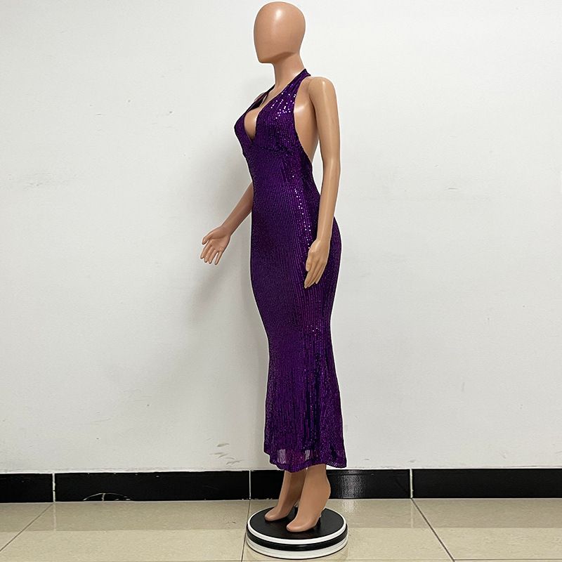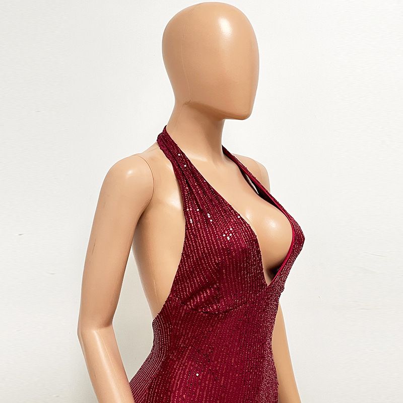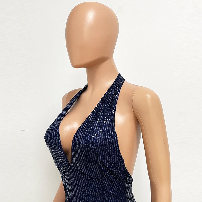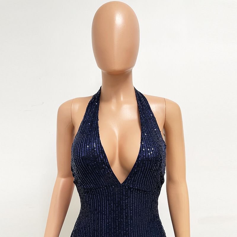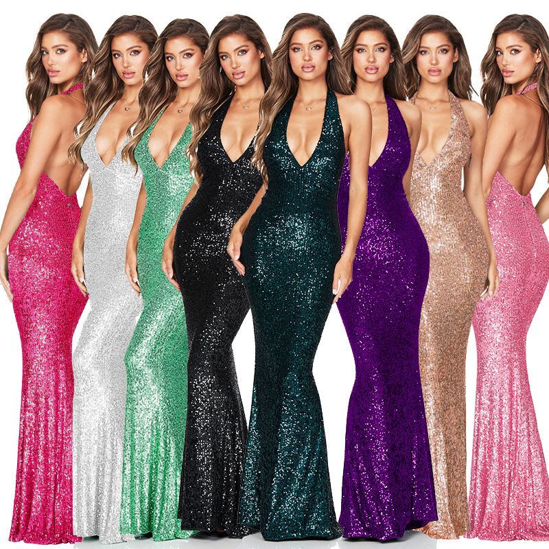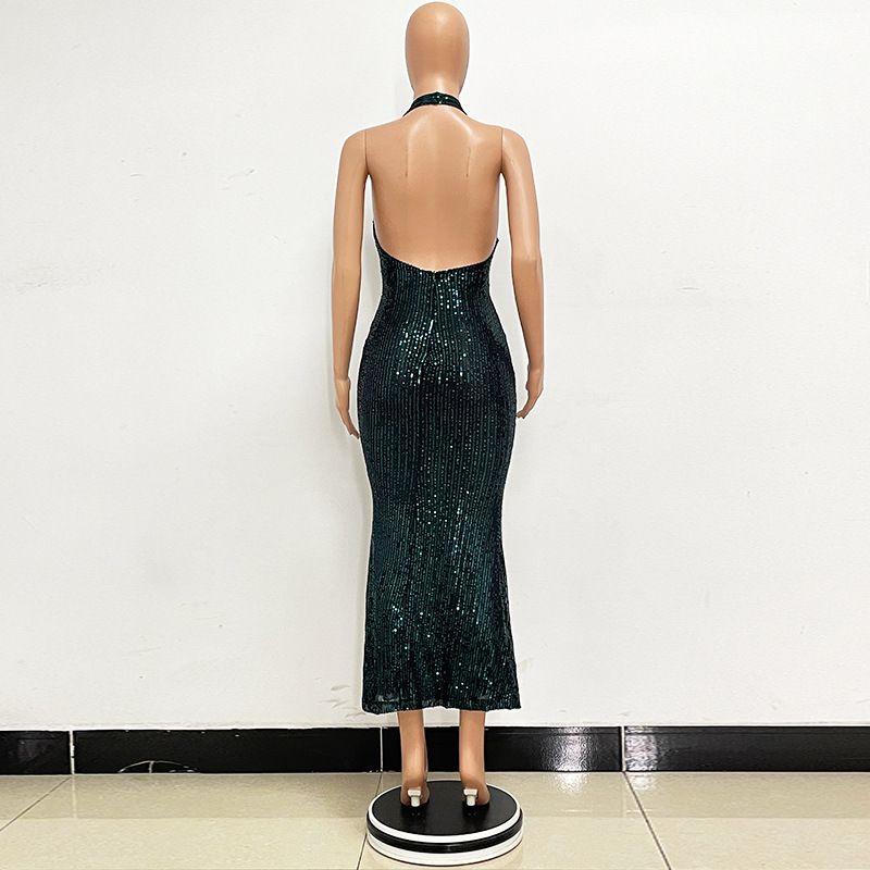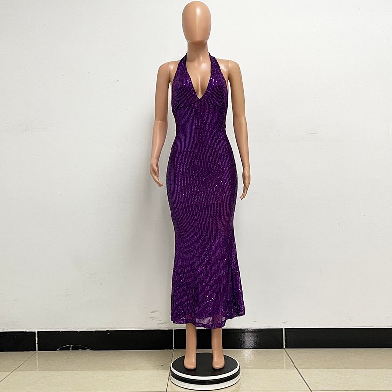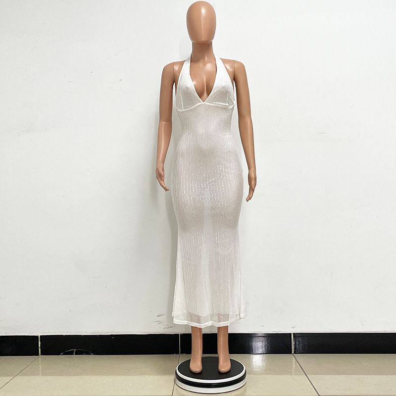 Women's Clothing Deep V Halter Neck Backless Dress Holiday Style Long Fishtail Dress