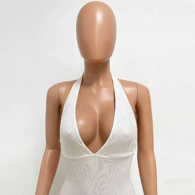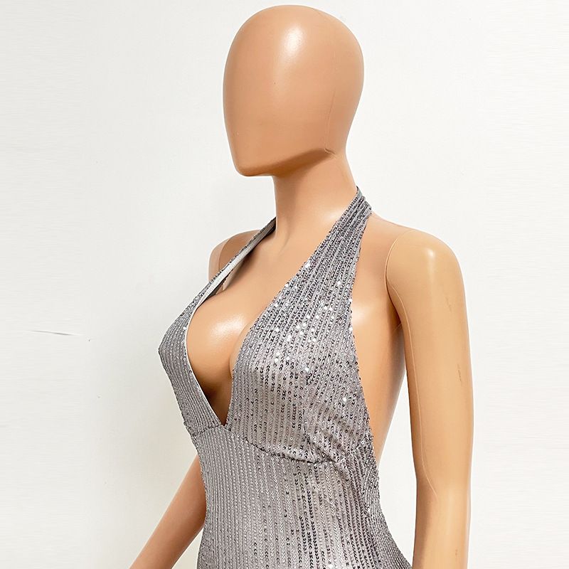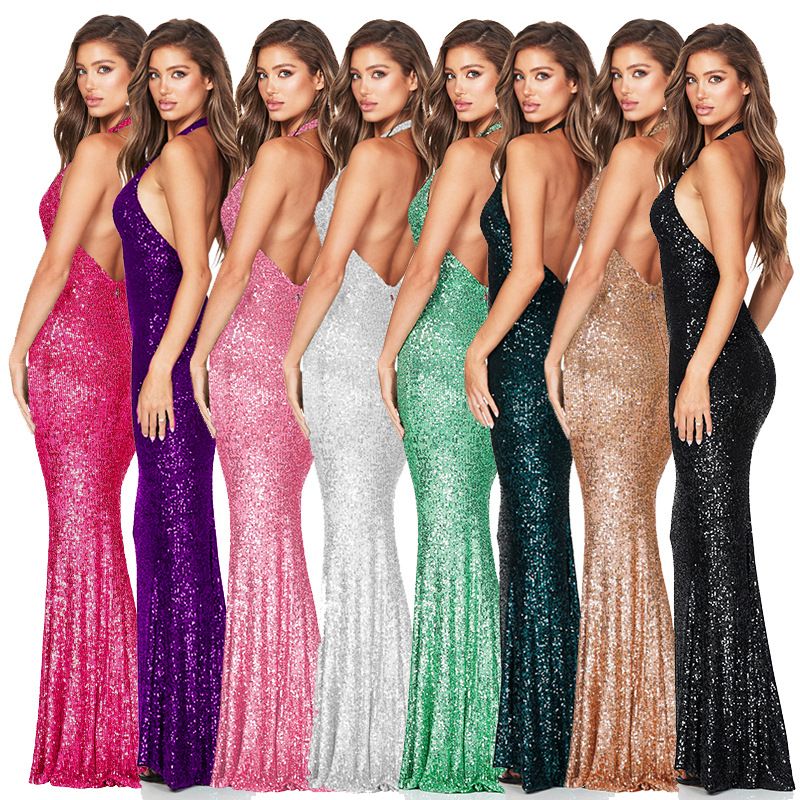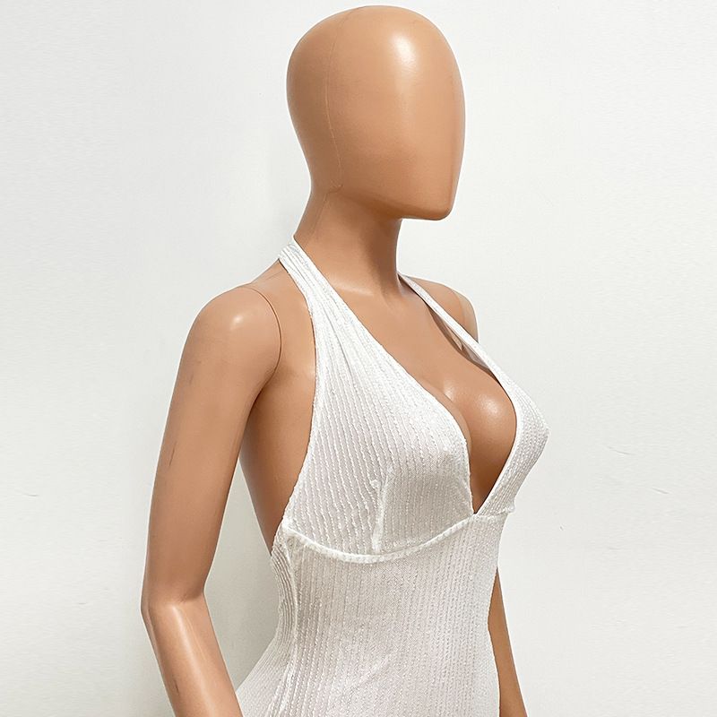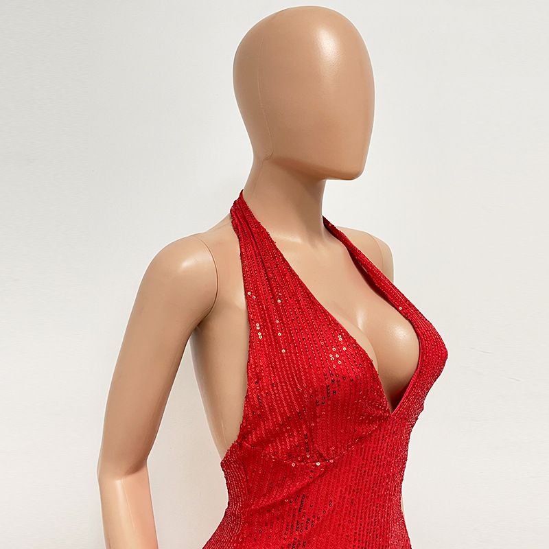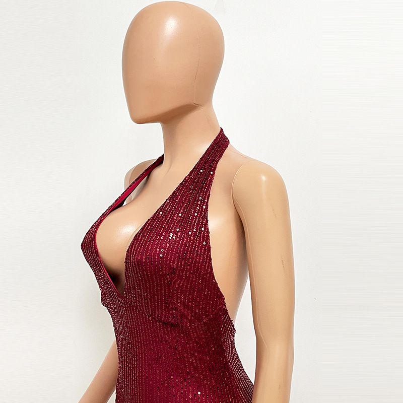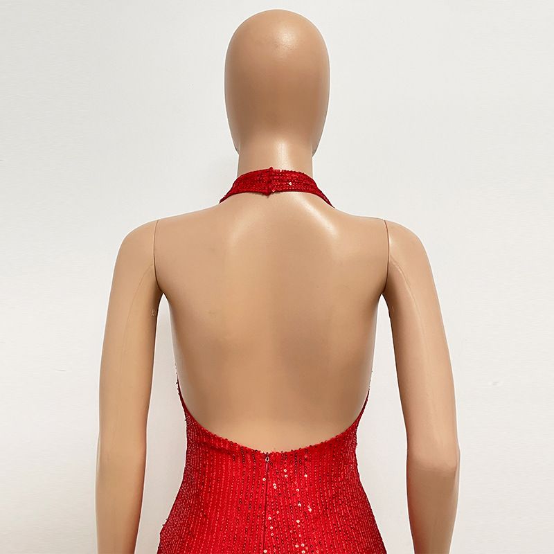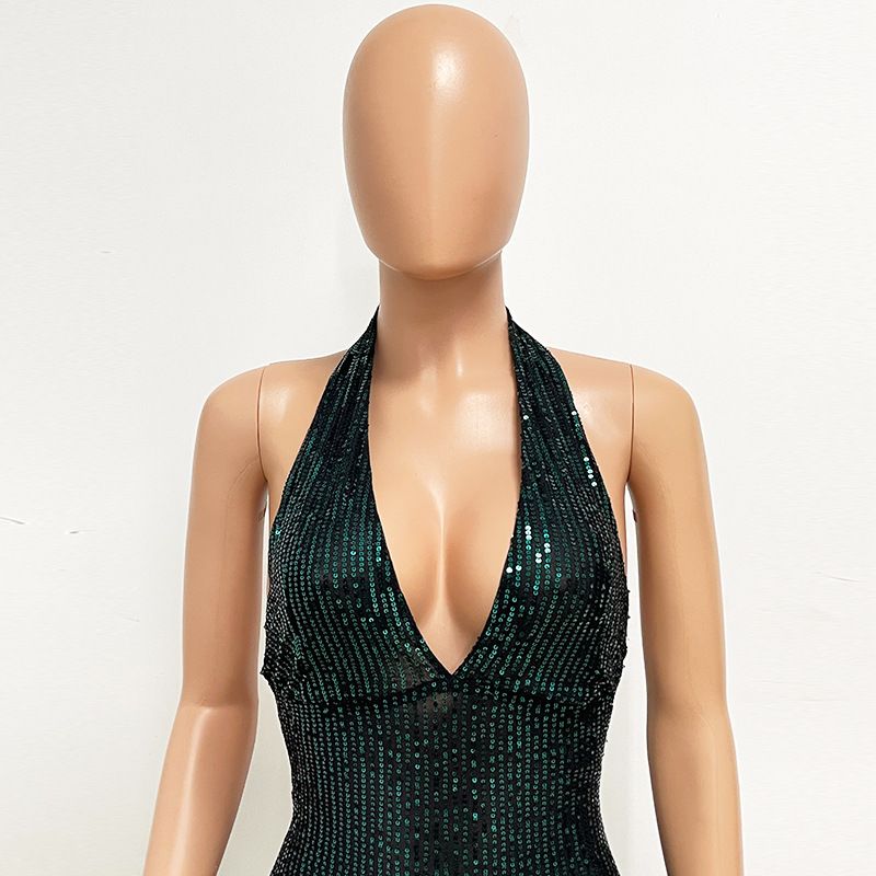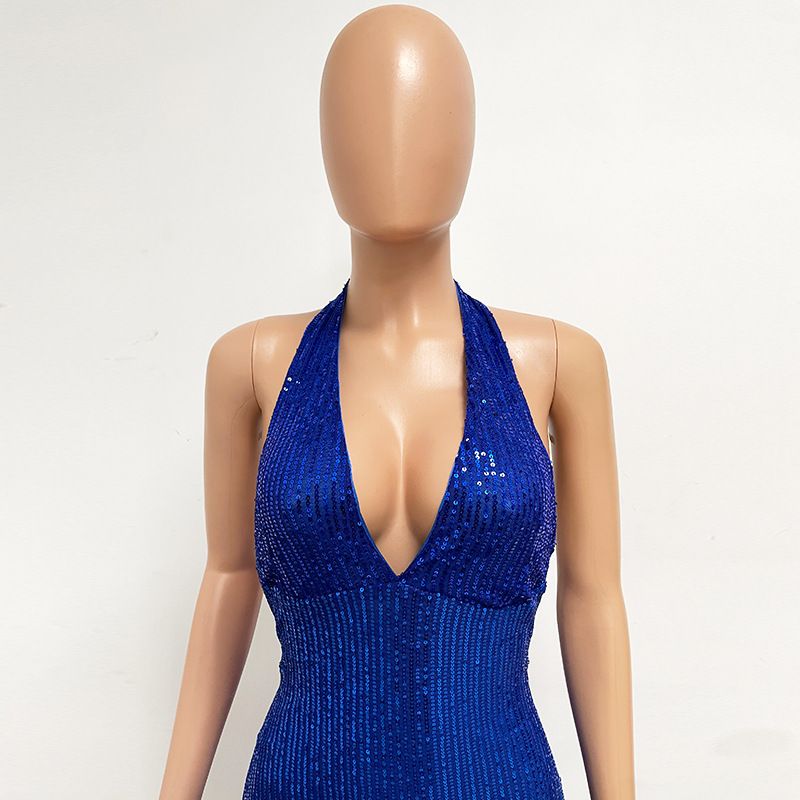 Women's Clothing Deep V Halter Neck Backless Dress Holiday Style Long Fishtail Dress
