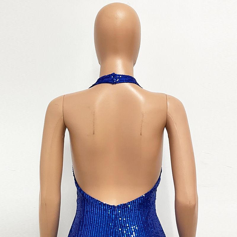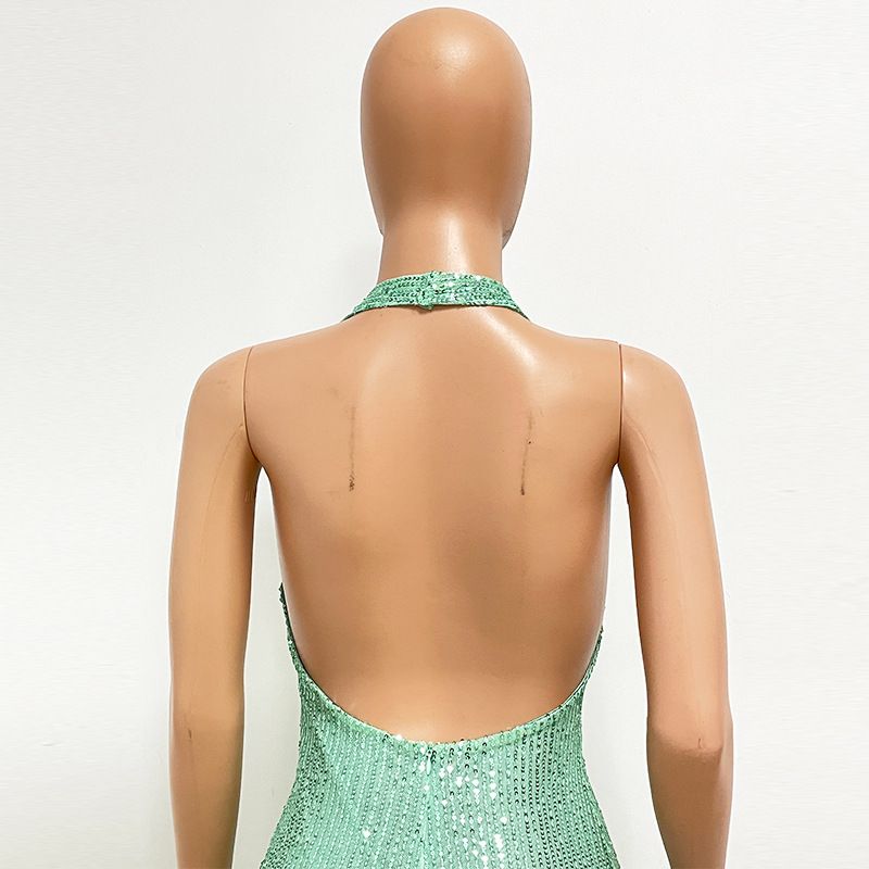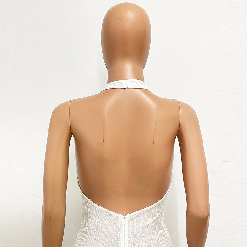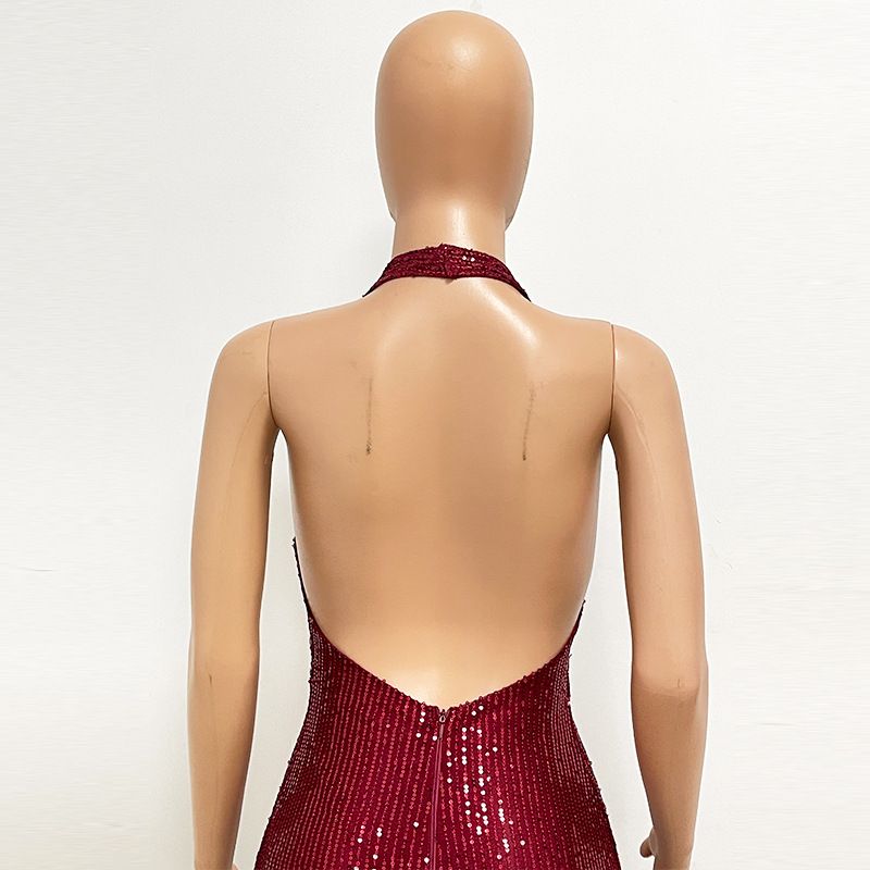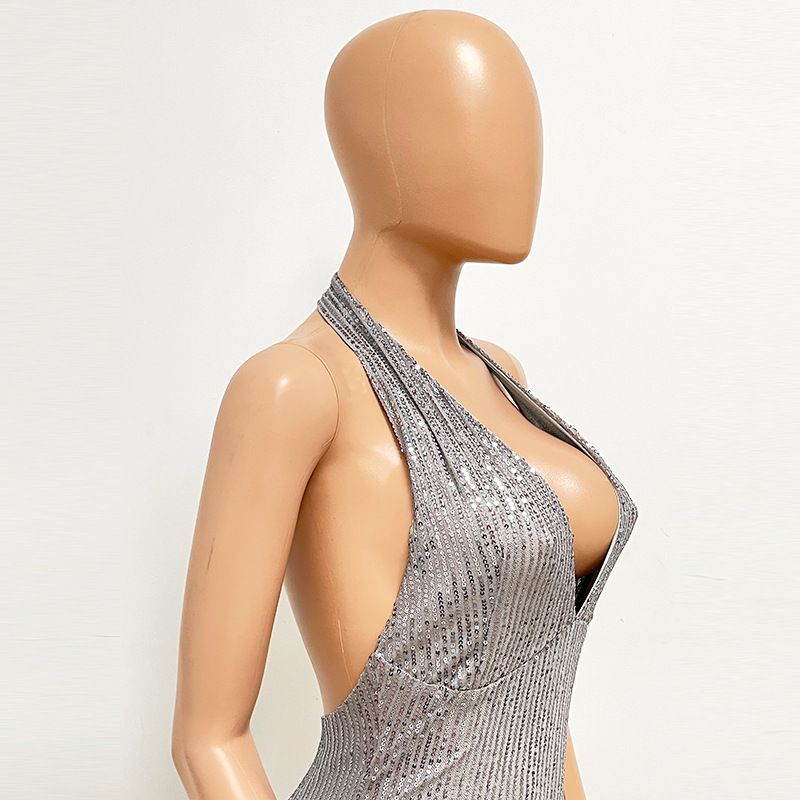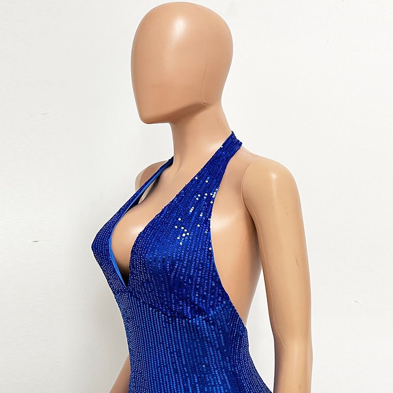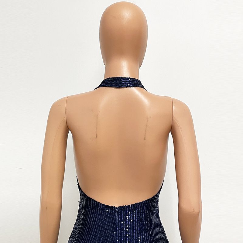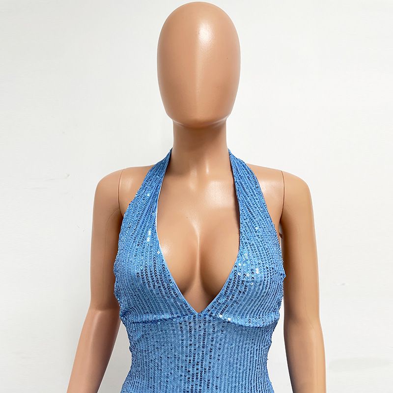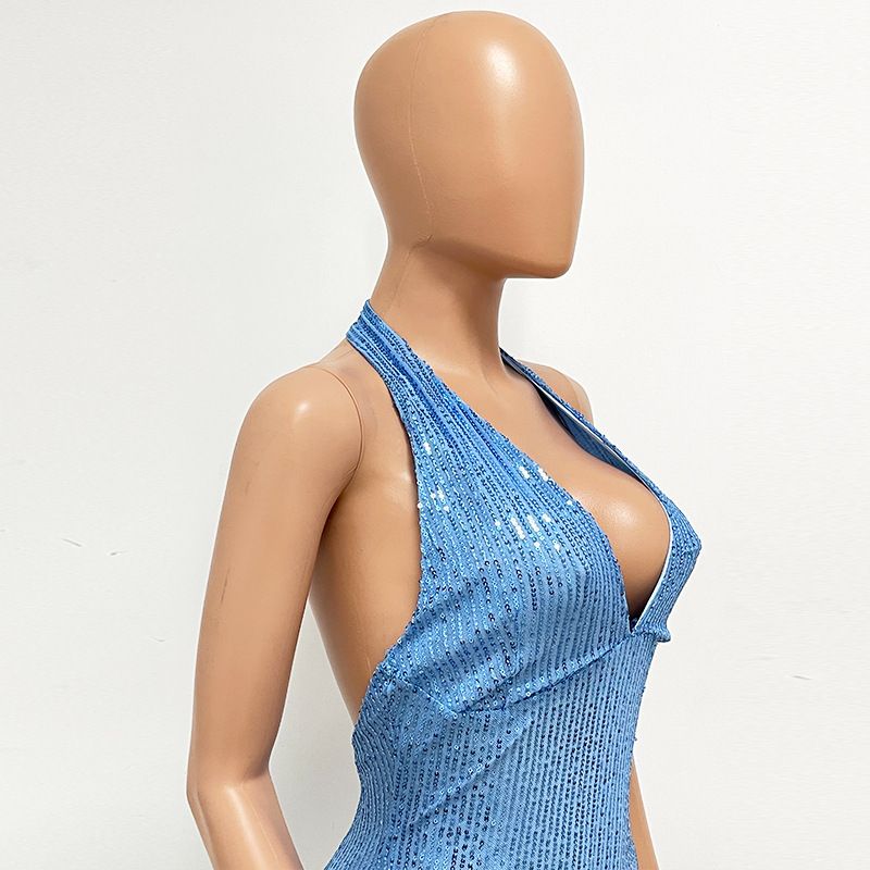 Women's Clothing Deep V Halter Neck Backless Dress Holiday Style Long Fishtail Dress