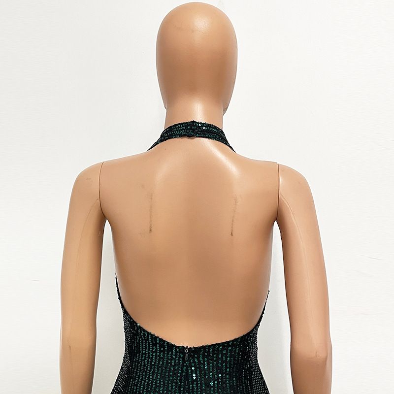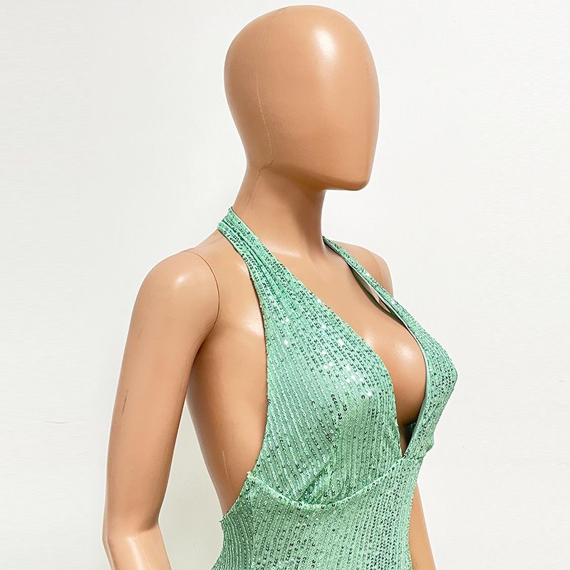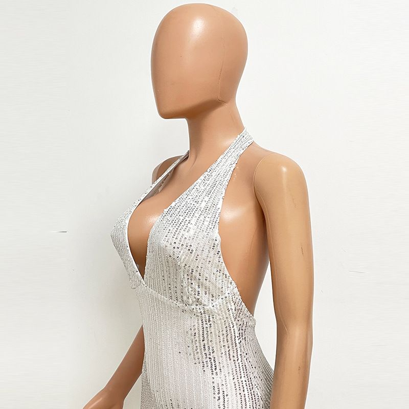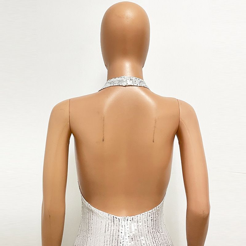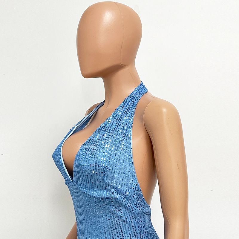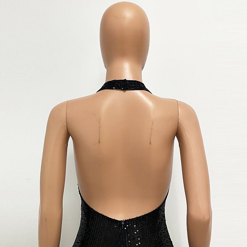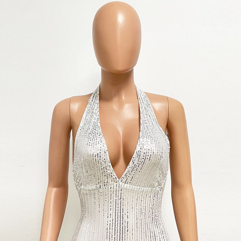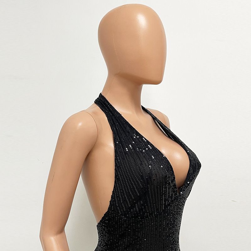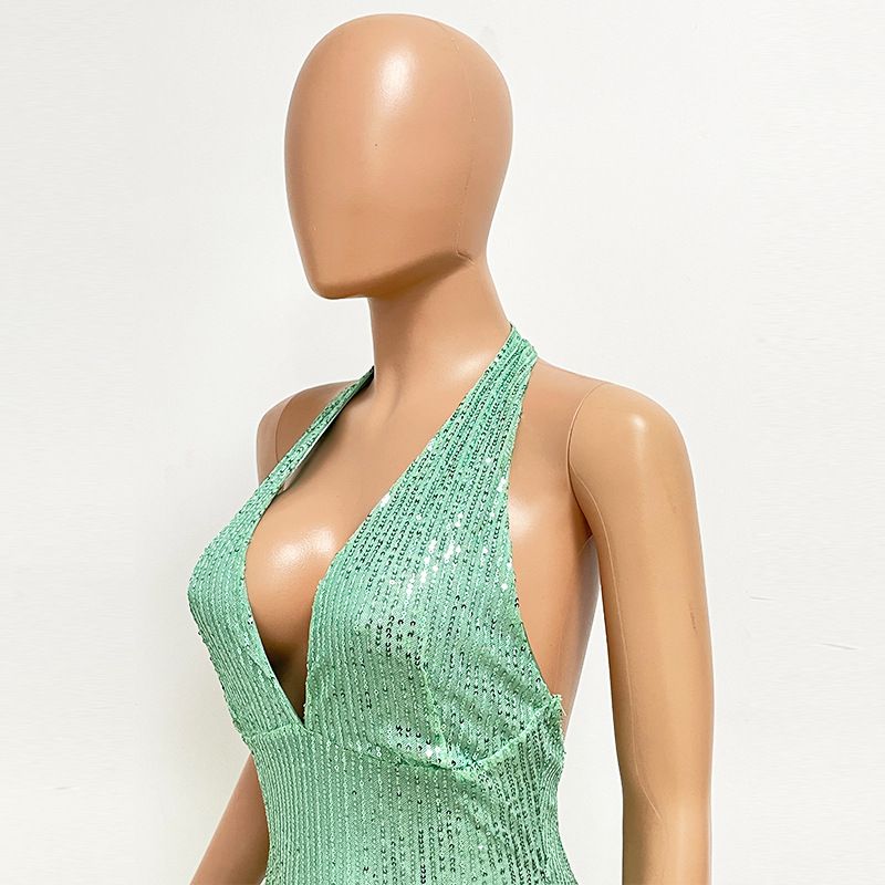 Women's Clothing Deep V Halter Neck Backless Dress Holiday Style Long Fishtail Dress