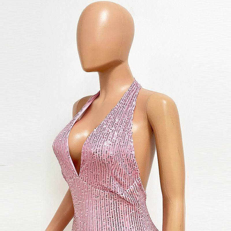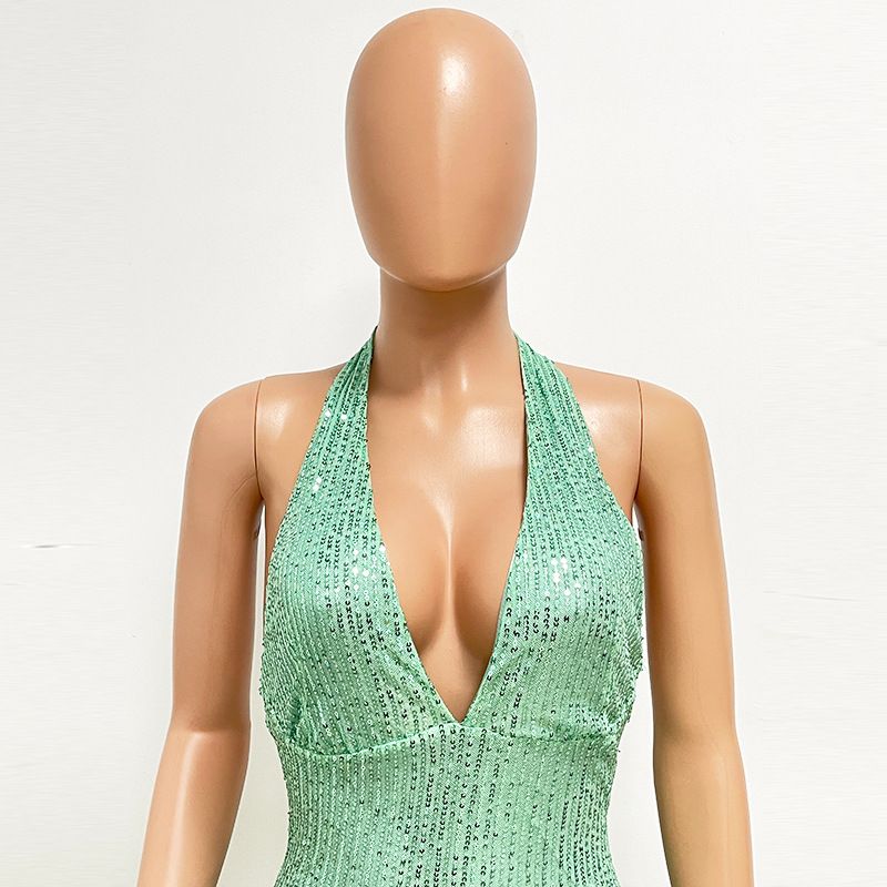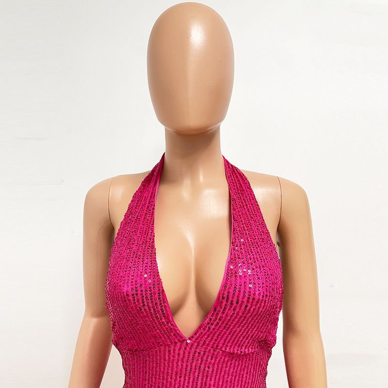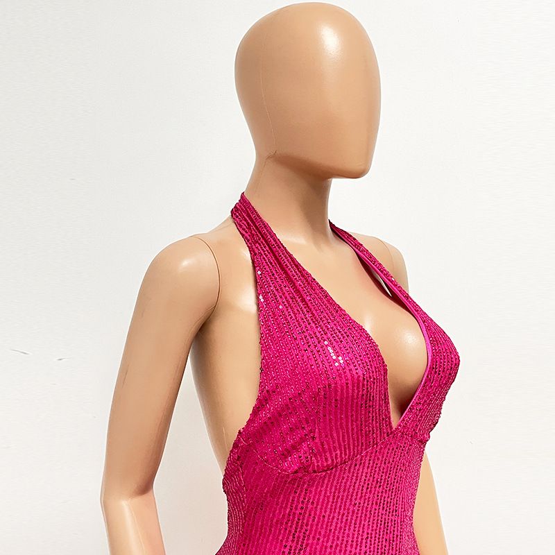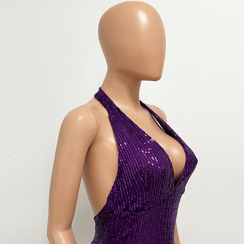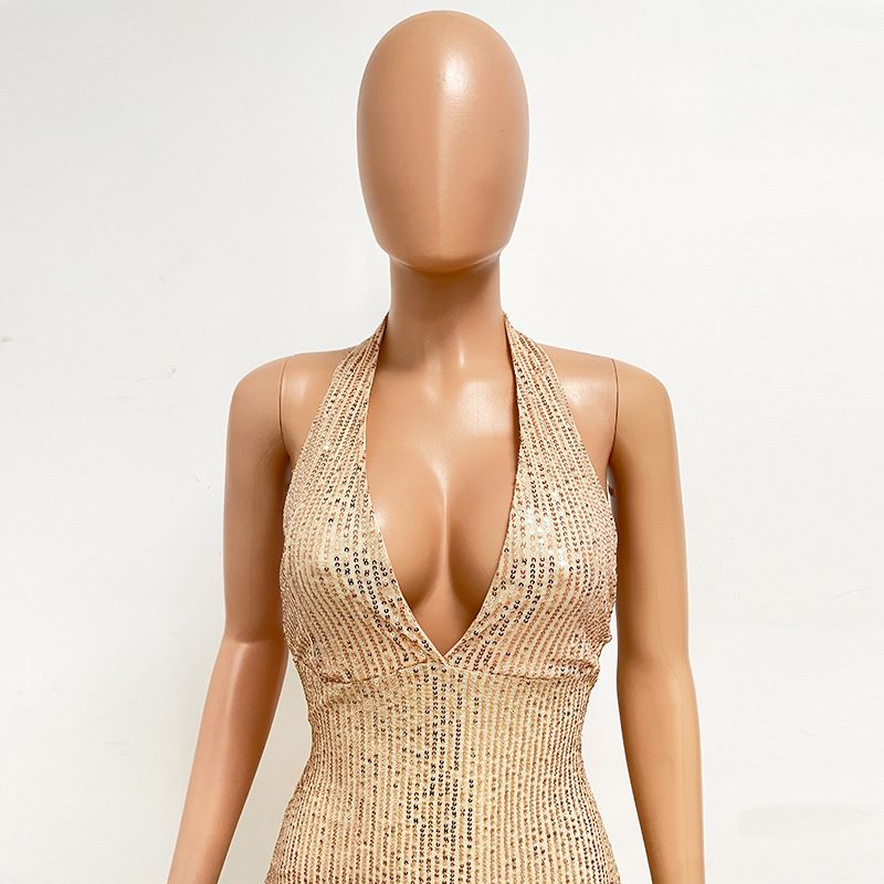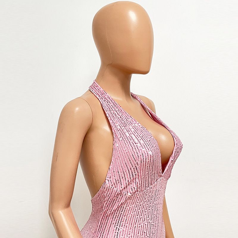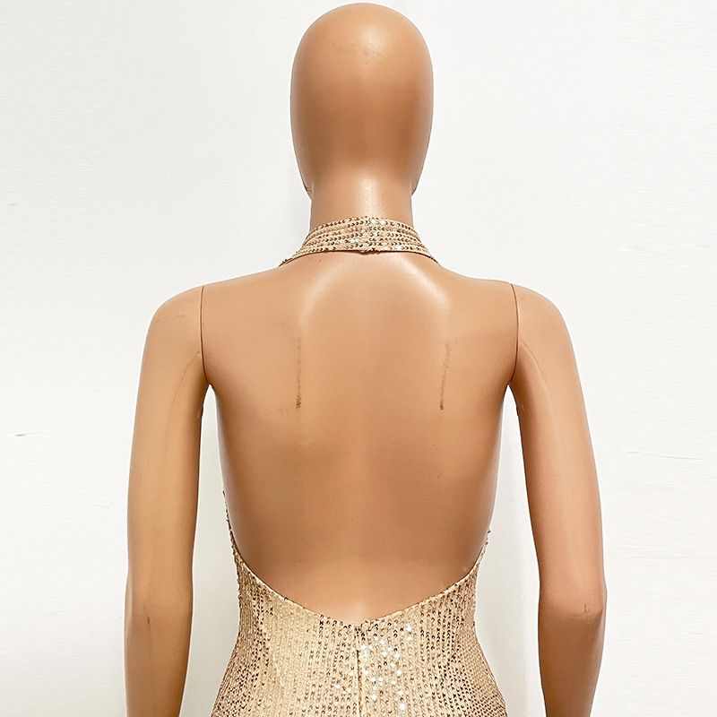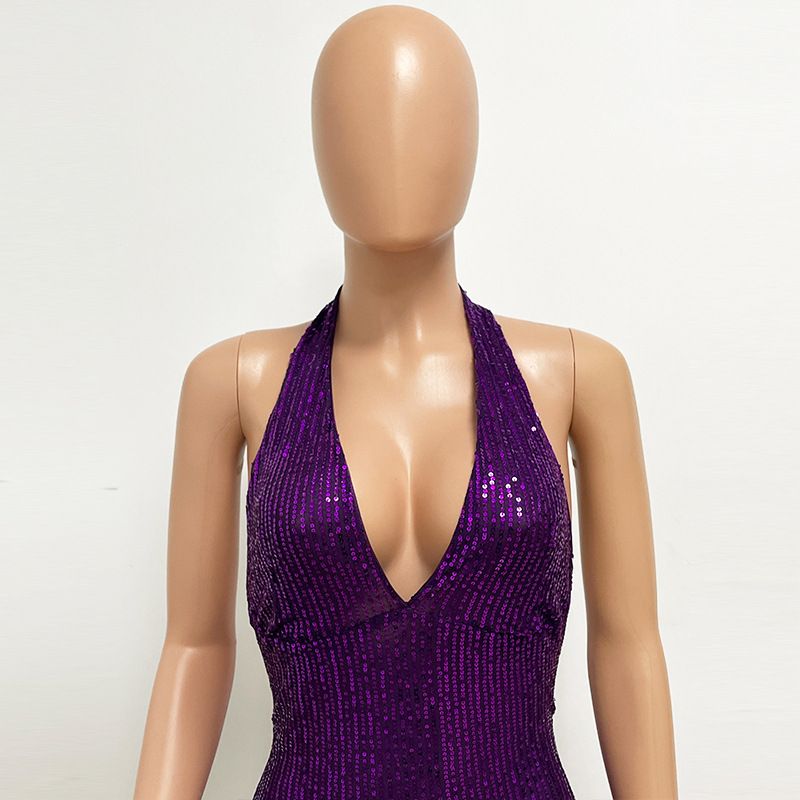 Women's Clothing Deep V Halter Neck Backless Dress Holiday Style Long Fishtail Dress