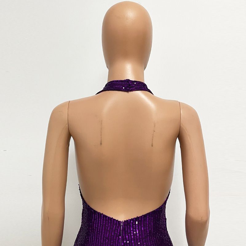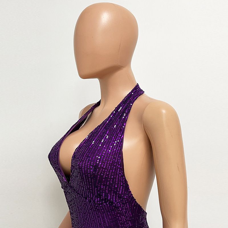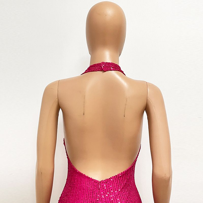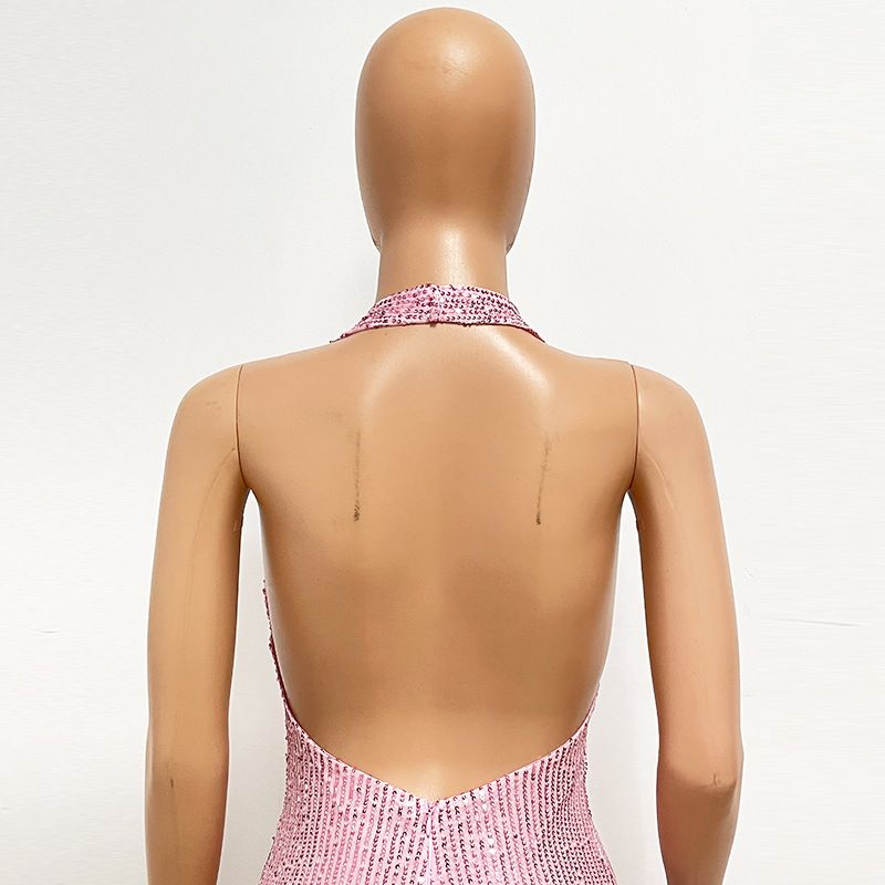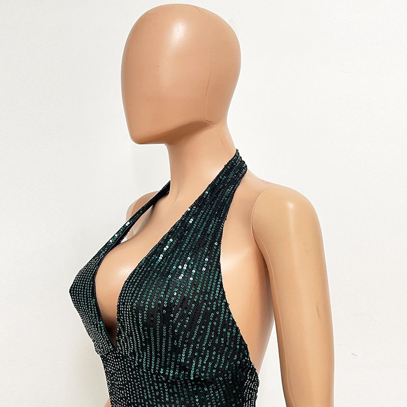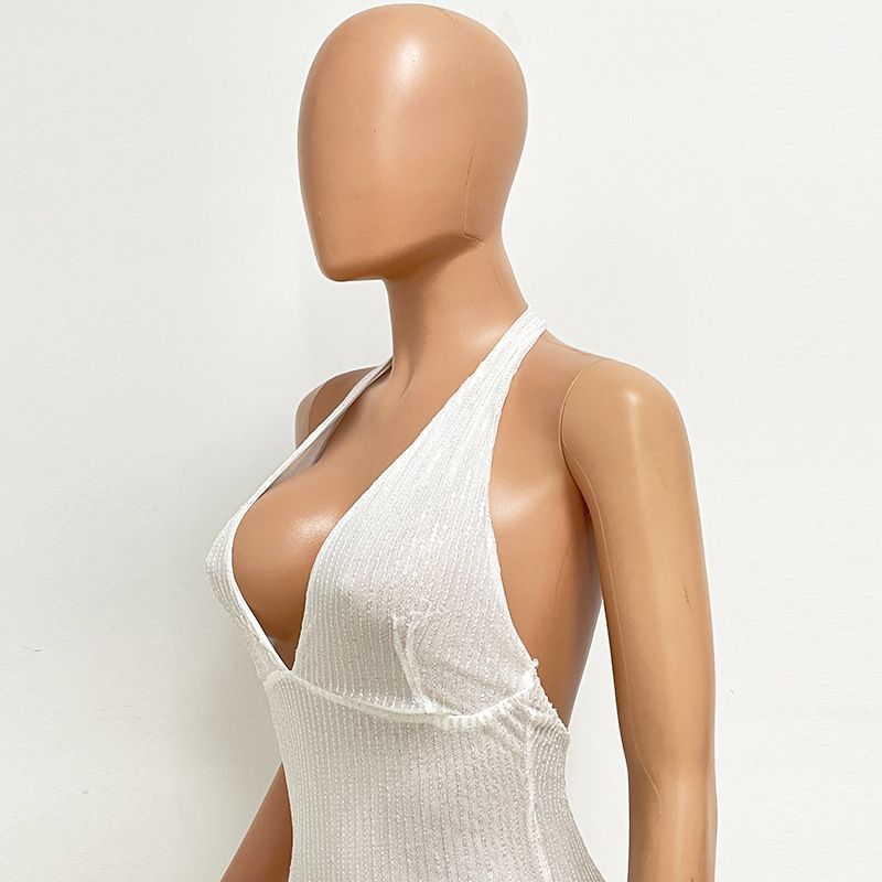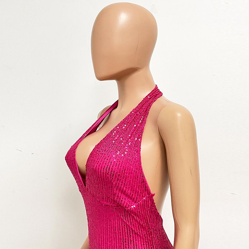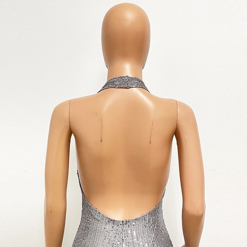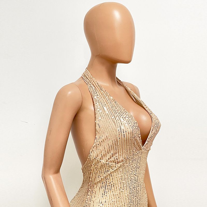 Women's Clothing Deep V Halter Neck Backless Dress Holiday Style Long Fishtail Dress