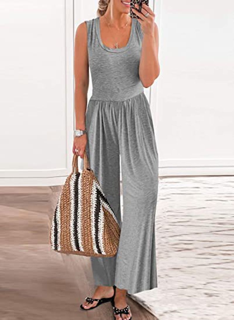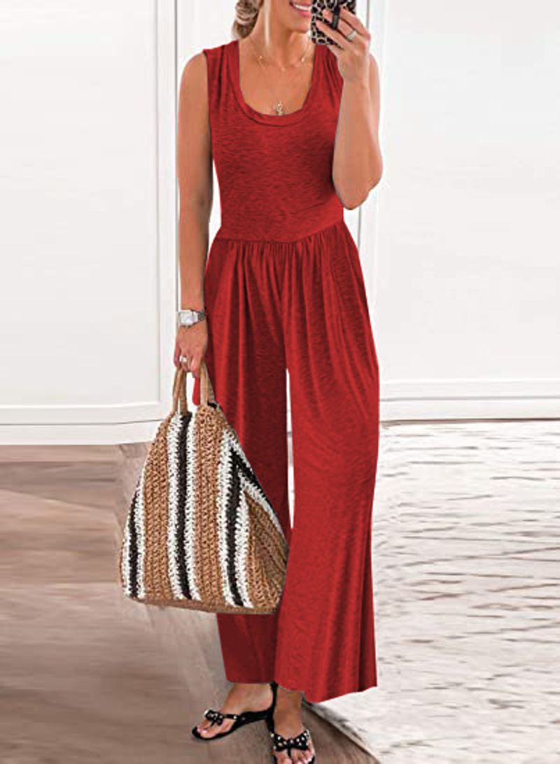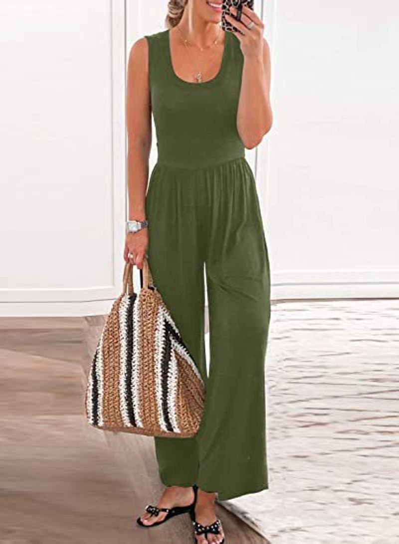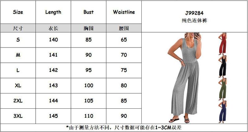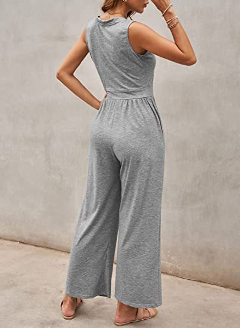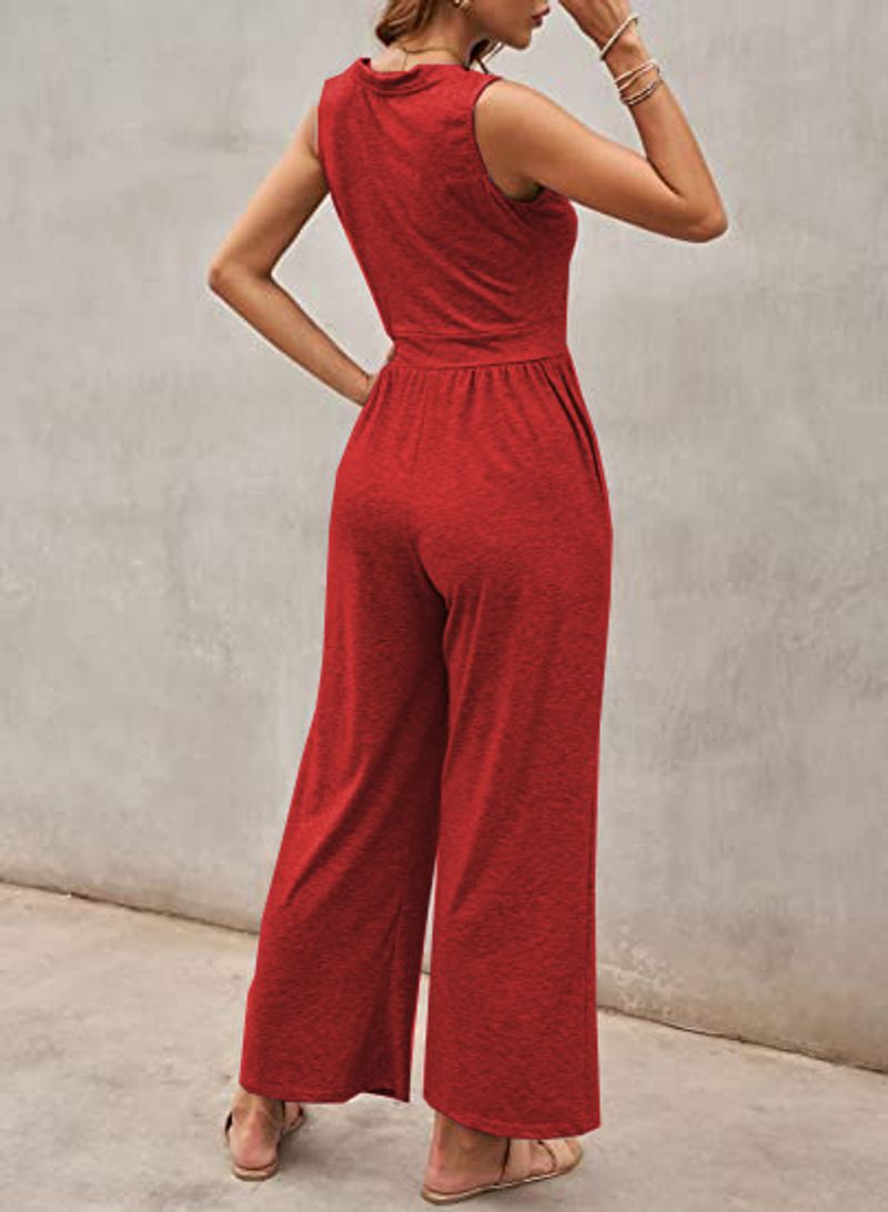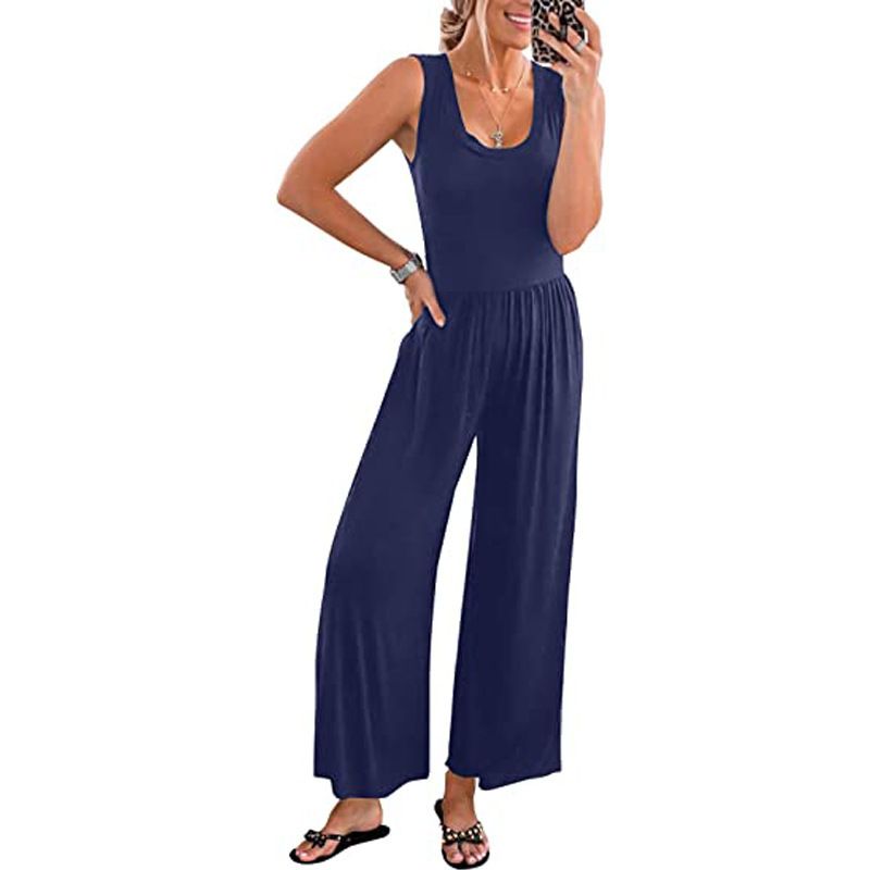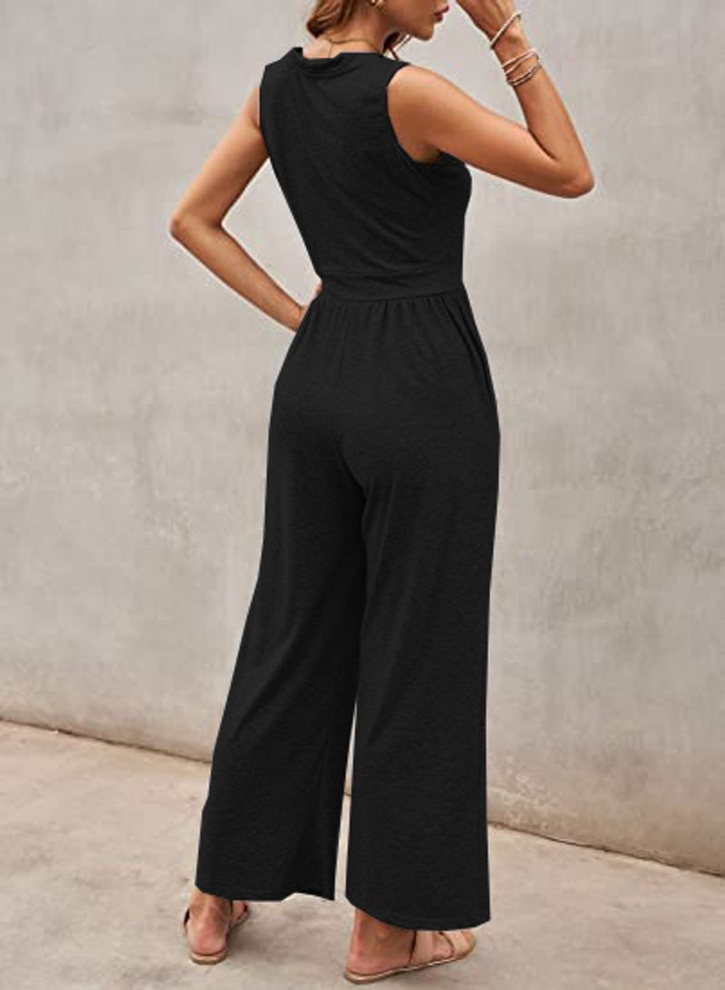 Women's Loose Sleeveless Jumpsuit Elastic Pants Jumpsuit Pocket Bodysuits